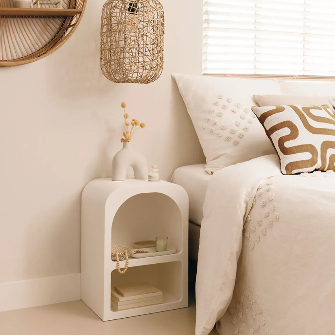 Mesita De Noche De MDF Soleya | Descubre las mesas auxiliares que tenemos para ti. Los muebles hôma están diseñados para Home Happy Living. Los mejores artículos de decoración están aquí. | Color: Blanco | Medidas: 40x30x55cm | Material: MDF | Marca: Atmosphera