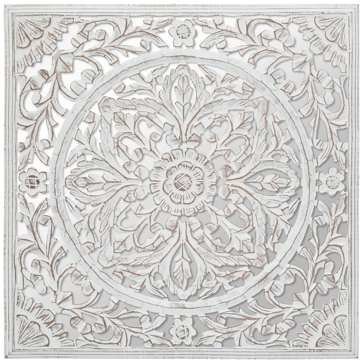 Mural De Madera Tallada Fanny Blanco 58cm | Descubre nuestra colección cuadros decorativos y personaliza tus paredes a tu gusto con hôma | Color: Blanco | Medidas: 58x3x58cm | Material: Mdf, Vidrio | Marca: Atmosphera