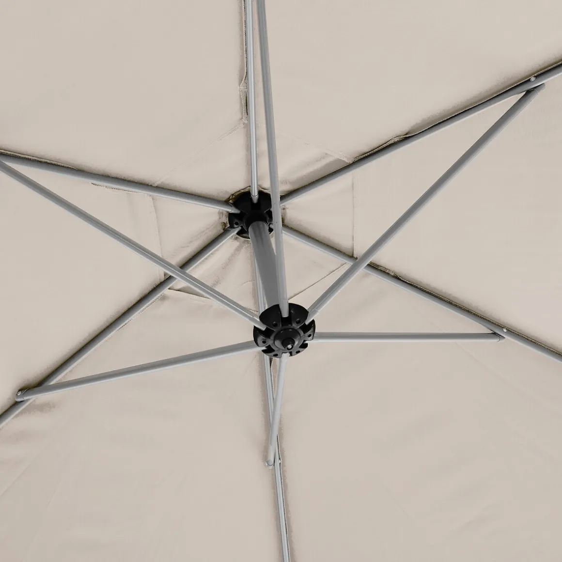 Parasol excéntrico MANOA beige ble 3m | Base no incluida | Tejido con tratamiento hidrófugo que permite que el agua resbale sin penetrar en el material | Chimenea de ventilación para facilitar la circulación del aire | Protección UV | Rotación de 360° | Lona atornillada al extremo de las varillas para un mejor mantenimiento de la lona | Elástico de apriete tipo mariposa | Tipo de apertura: Push up + Asa | Color: Beige | Medidas: 2.5x3x3m | Material: Acero, Aluminio, Poliéster | Marca: Hespéride