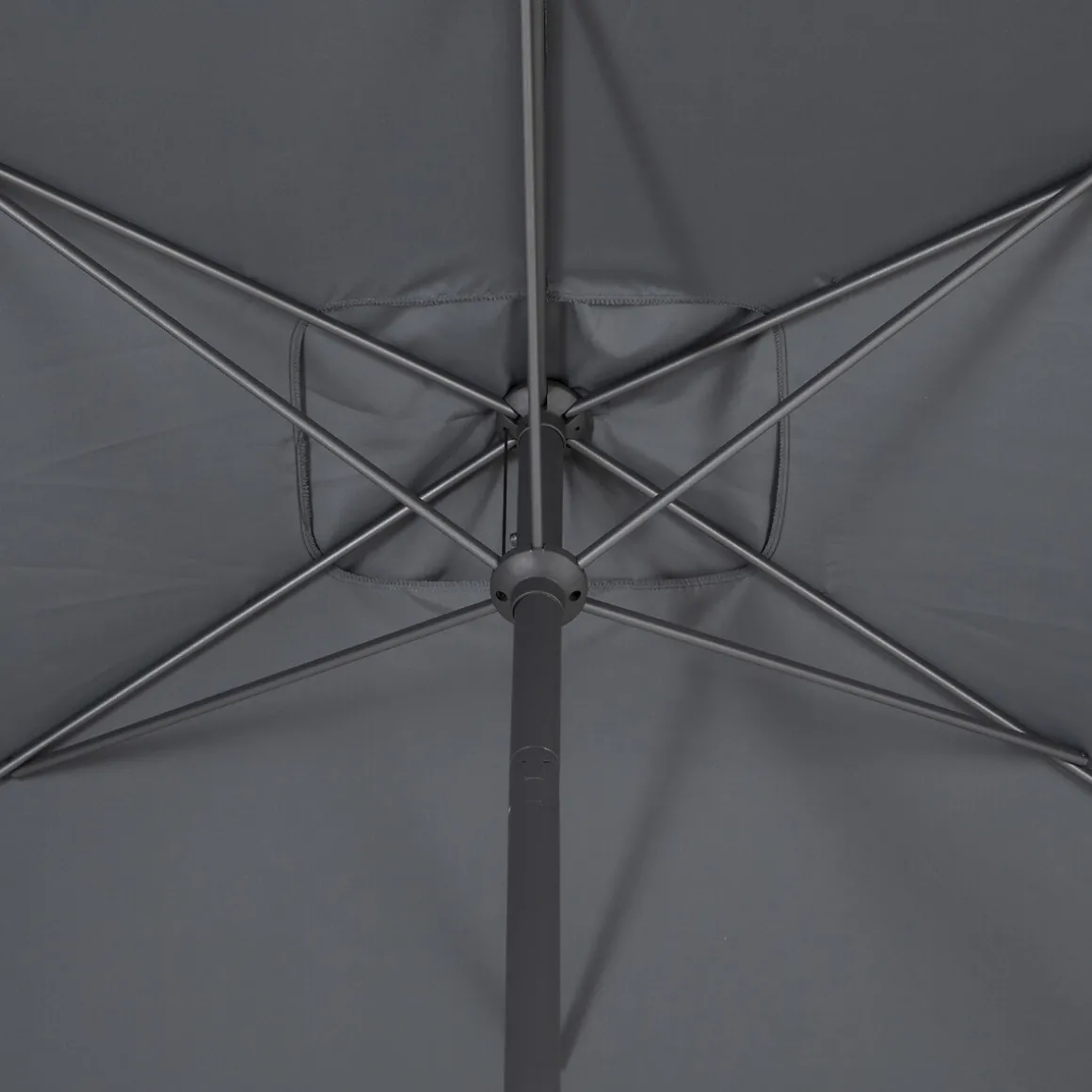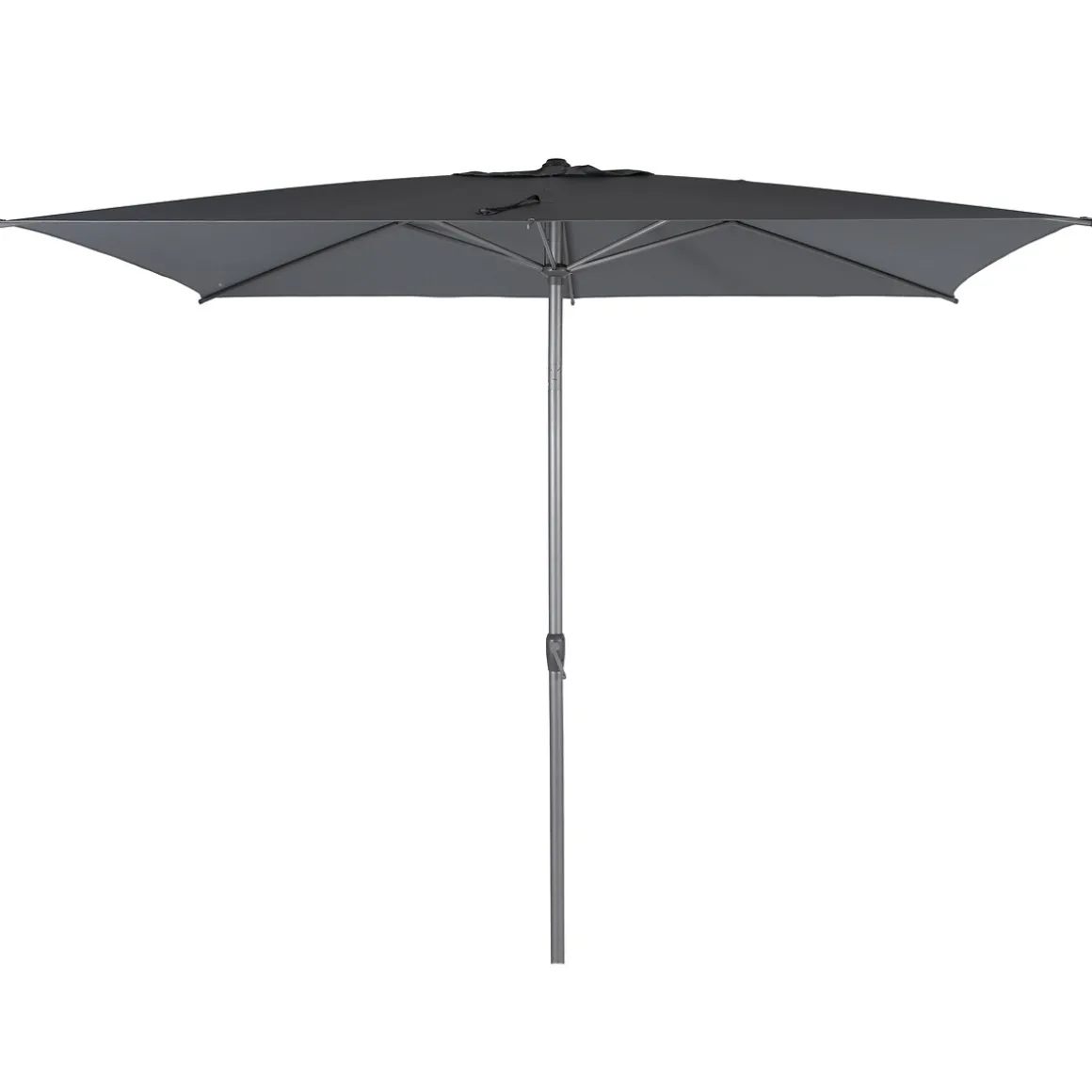 Parasol LOOMPA gris ardosia 2x3m | Base no incluida | Apertura con manivela | Sistema de inclinación | Chimenea de ventilación para facilitar la circulación del aire | Lona atornillada al extremo de las varillas para un mejor mantenimiento de la lona | Cremallera elástica mariposa | Color: gris ardosia | Medidas: 2.5x2x3m | Material: Aluminio, Acero, Poliéster | Marca: Hespéride