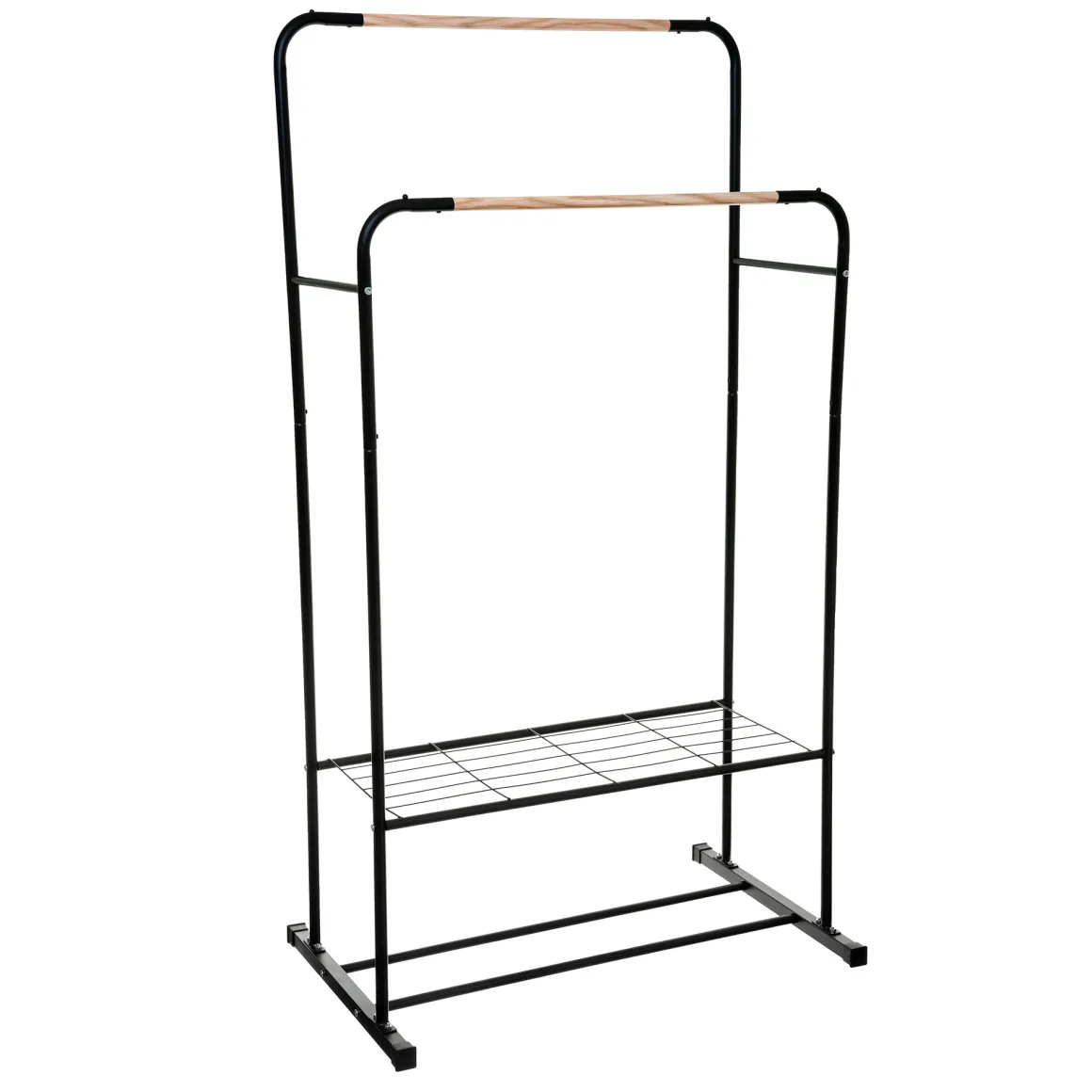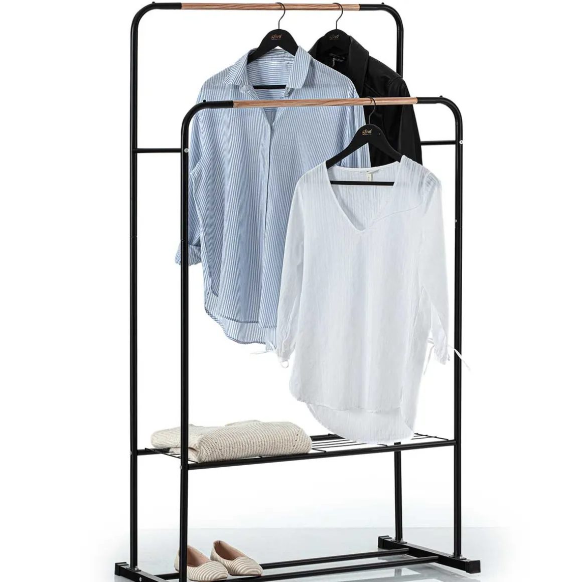 Perchero De Metal Con Barra Doble | Capacidad Máxima: 16kg | Conoce este y más artículos que tenemos disponibles para tu vestidor. ¡Ordenar y organizar tus armarios y vestidores nunca ha sido tan fácil! Descubre la gama de almacenaje hôma | Color: Negro | Medidas: 150x50x80cm | Material: Metal | Capacidad: 16kg | Marca: 5Five