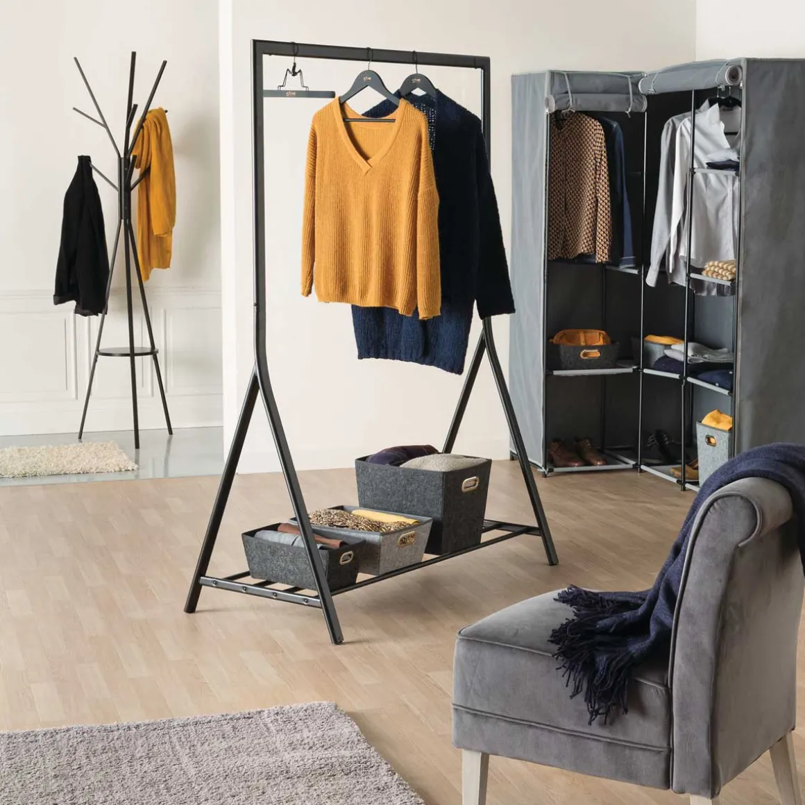 Perchero De Pie En Madera/Metal Negro | Estructura de madera y metal | Conoce este y más artículos que tenemos disponibles para tu vestidor. ¡Ordenar y organizar tus armarios y vestidores nunca ha sido tan fácil! Descubre la gama de almacenaje hôma | Material: Metal, Madera | Marca: 5Five