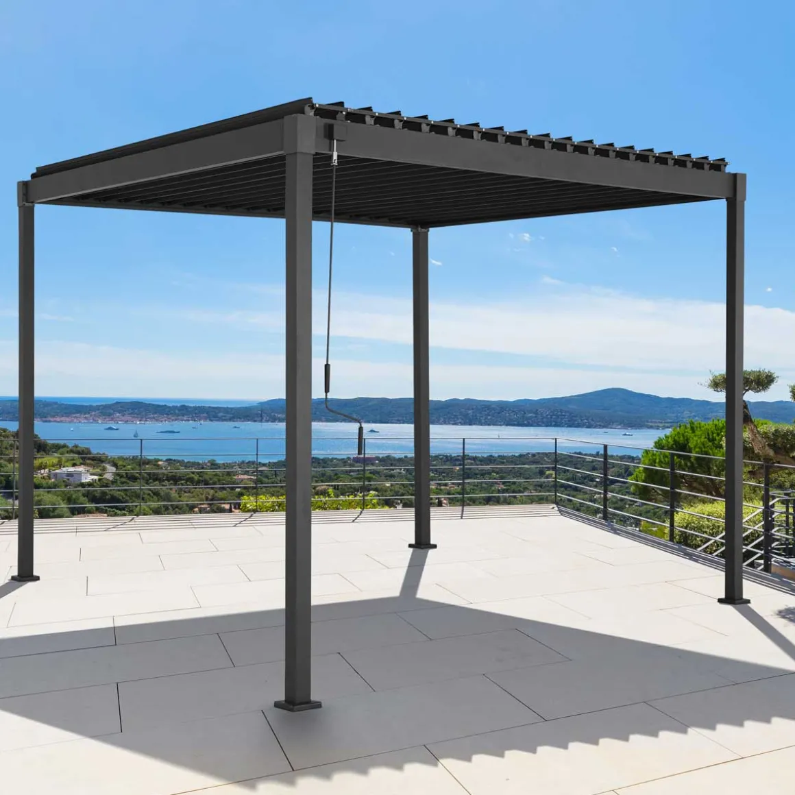 Pérgola HOKIA gris graphite 3x3m | Medidas de los pilares: 80x80mm | Estructura de acero galvanizado | Cortinas no incluidas | Lamas regulables mediante manivela | Color: Grafito | Medidas: 2.5x3x3m | Material: Acero galvanizado | Marca: Hespéride