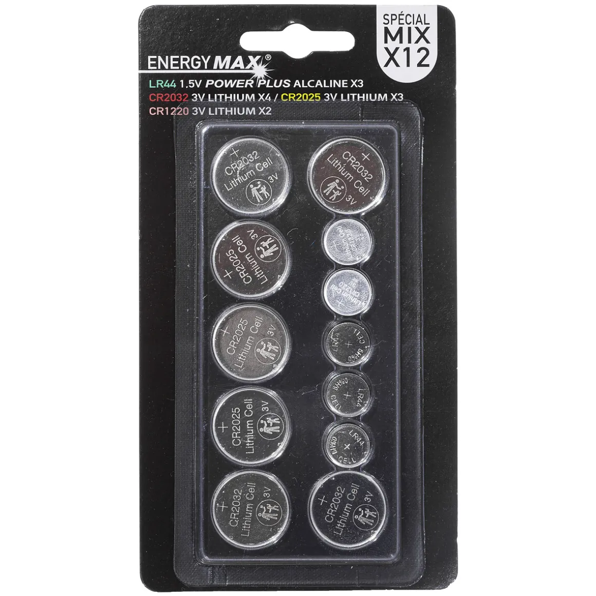 Pilas redondas diversas 12 unidades | Color: Plateado | Medidas Batería: 2×0.3cm | Material: Litio