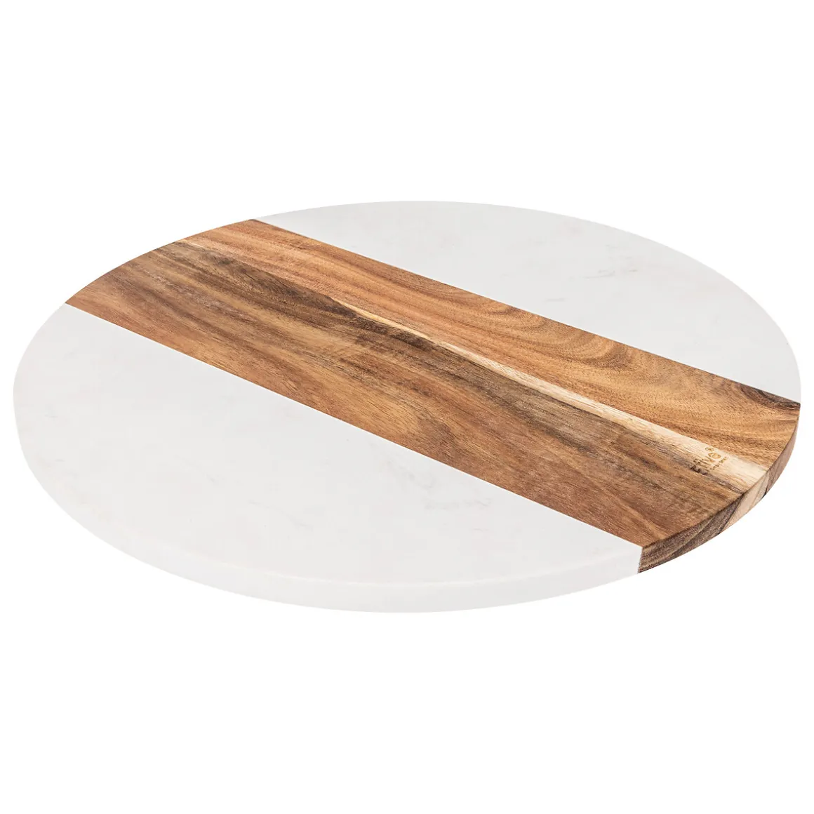 Plato giratorio redondo para aperitivo marrón 35cm | ¿Sabías que tu cocina puede ser el lugar más feliz del mundo? Descubre nuestra gama de utensilios para una cocina llena de Happy Home Living. ¡Cocinar con los utensilios adecuados es mucho más fácil! | Color: Marrón, Blanco | Medidas: 34.9×2.9×34.9cm | Material: Mármol, Madera de acacia