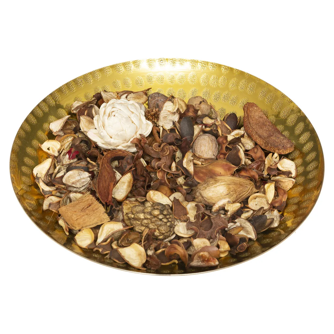 Popurrí De Jazmín 140g Con Plato Metálico Dorado 140G | En hôma encontrarás una gran variedad de ambientadores que refrescarán tu hogar. | Material: Flores secas, Metal | Aroma: Jazmín | Marca: Atmosphera