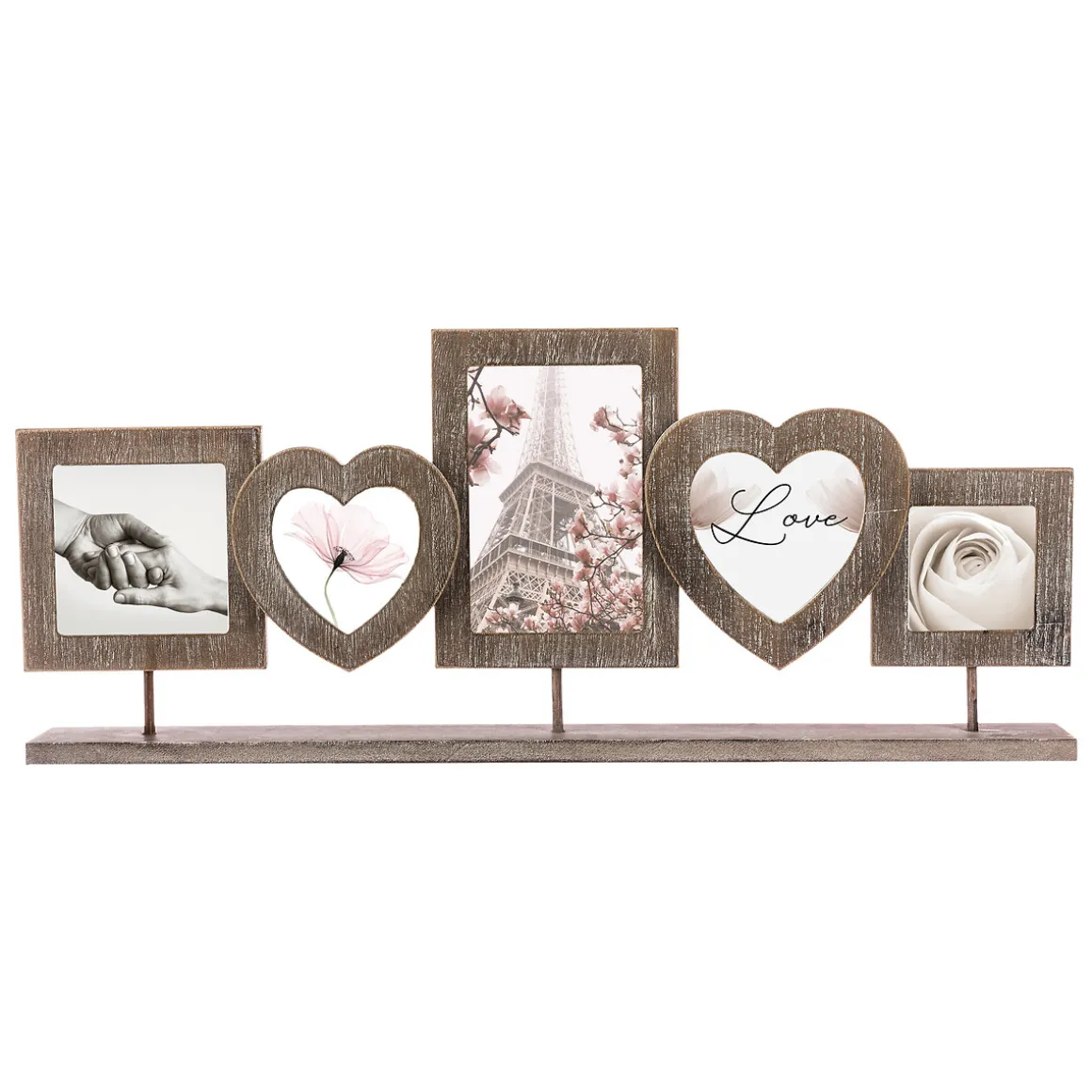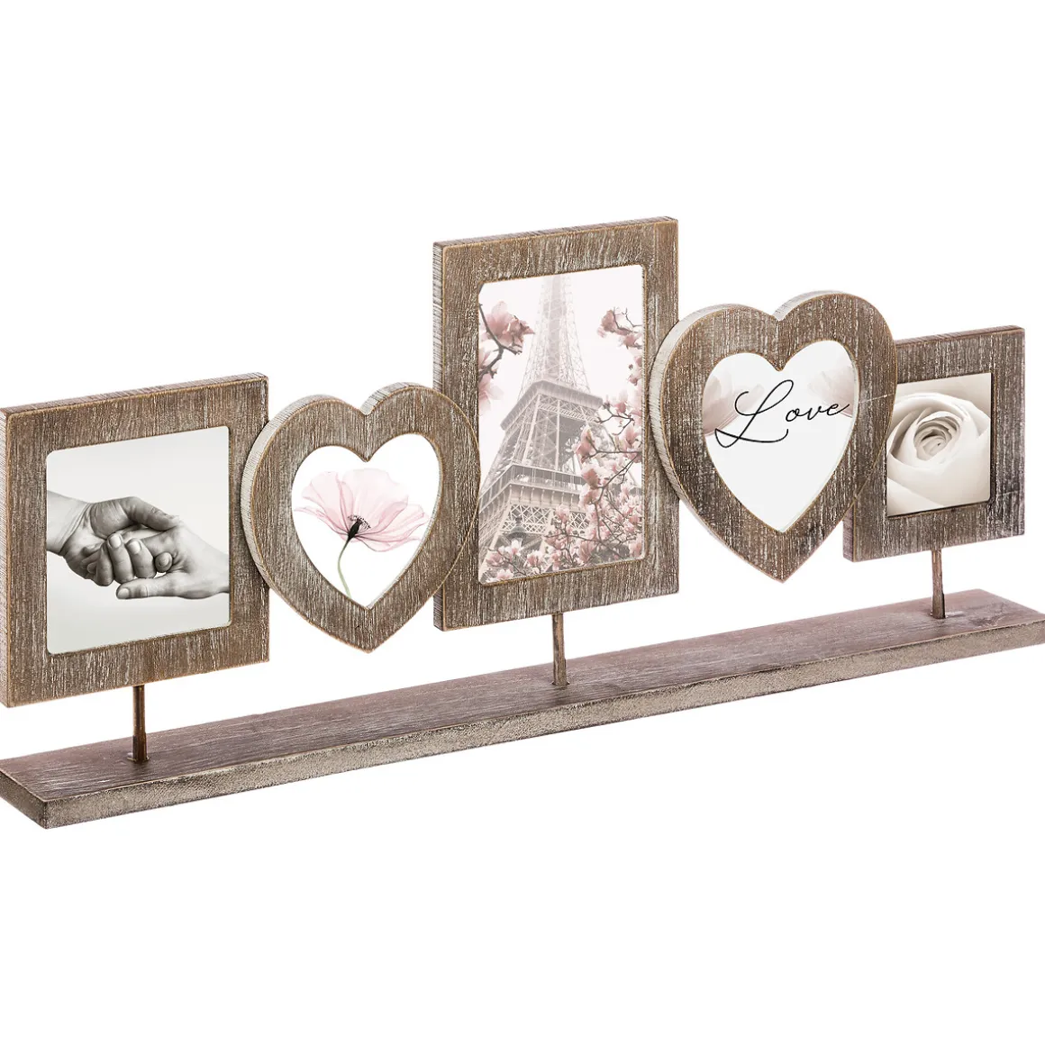Portarretrato Múltiple Para 5 fotos De Mdf | Descubre este y otros marcos de fotos hôma que tenemos para ti. Recuerda y decora tu casa con tus mejores momentos. | Medidas: 55.5×22.7cm