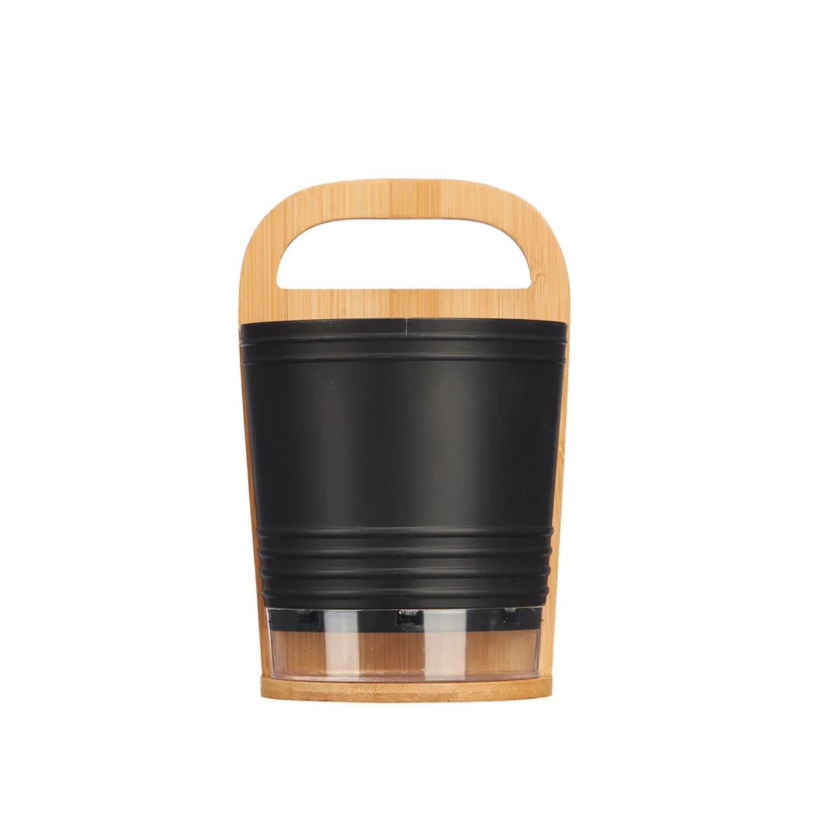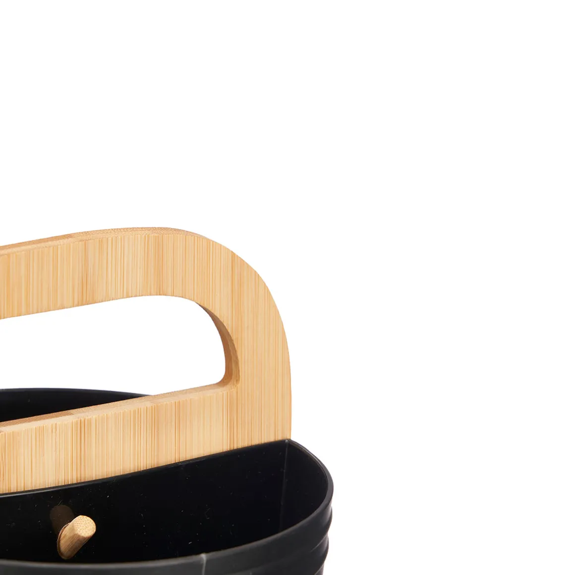 Porta Utensilios Doble Negro Con Mango De Bambú | 21,5x14x14,6cm | ¿Sabías que tu cocina puede ser el lugar más feliz del mundo? Descubre nuestra gama de utensilios para una cocina llena de Happy Home Living. Cocinar con los utensilios adecuados es mucho más fácil. | Color: Negro, Marrón Tamaño: 21,5x14x14,6cm Material: Plástico, Bambú