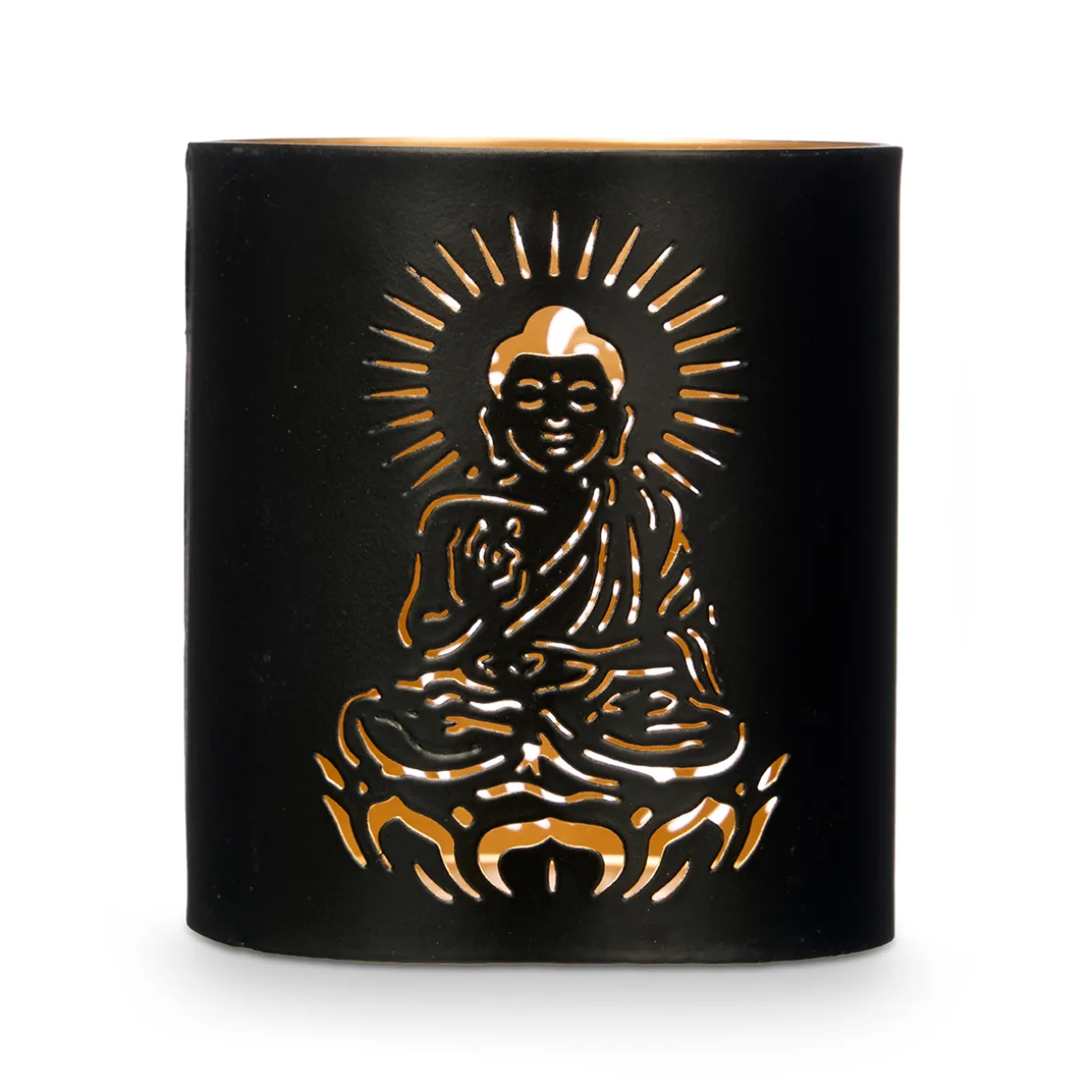 Portavelas buda negro y dorado | 10x9x9cm. | Descubre nuestra gama de velas decorativas para la casa. En Hôma encontrarás la mejor decoración para tu hogar. | Color: Negro, dorado. | Medidas: 10x9x9cm. | Material: Metal.