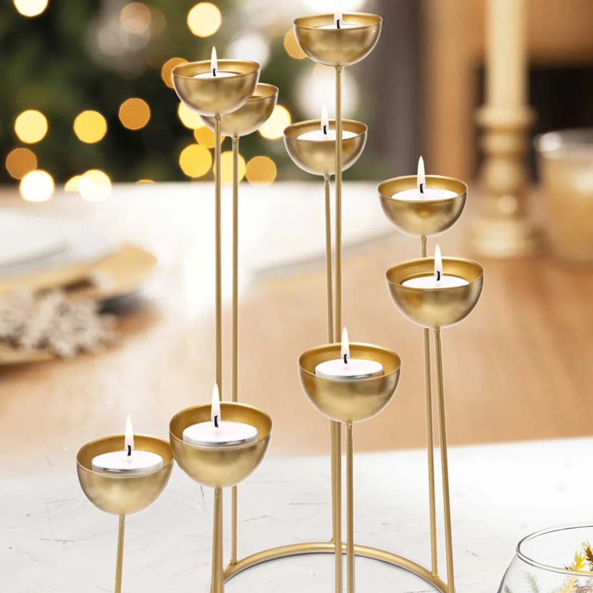 Portavelas Espiral Dorado De Metal | Capacidad para 8 Velas | 35x24x25cm | Descubre nuestra gama de portavelas y encuentra el que mejor se adapte a la decoración de tu hogar. | Color: Dorado | Medidas: 35x24x25cm | Material: Metal