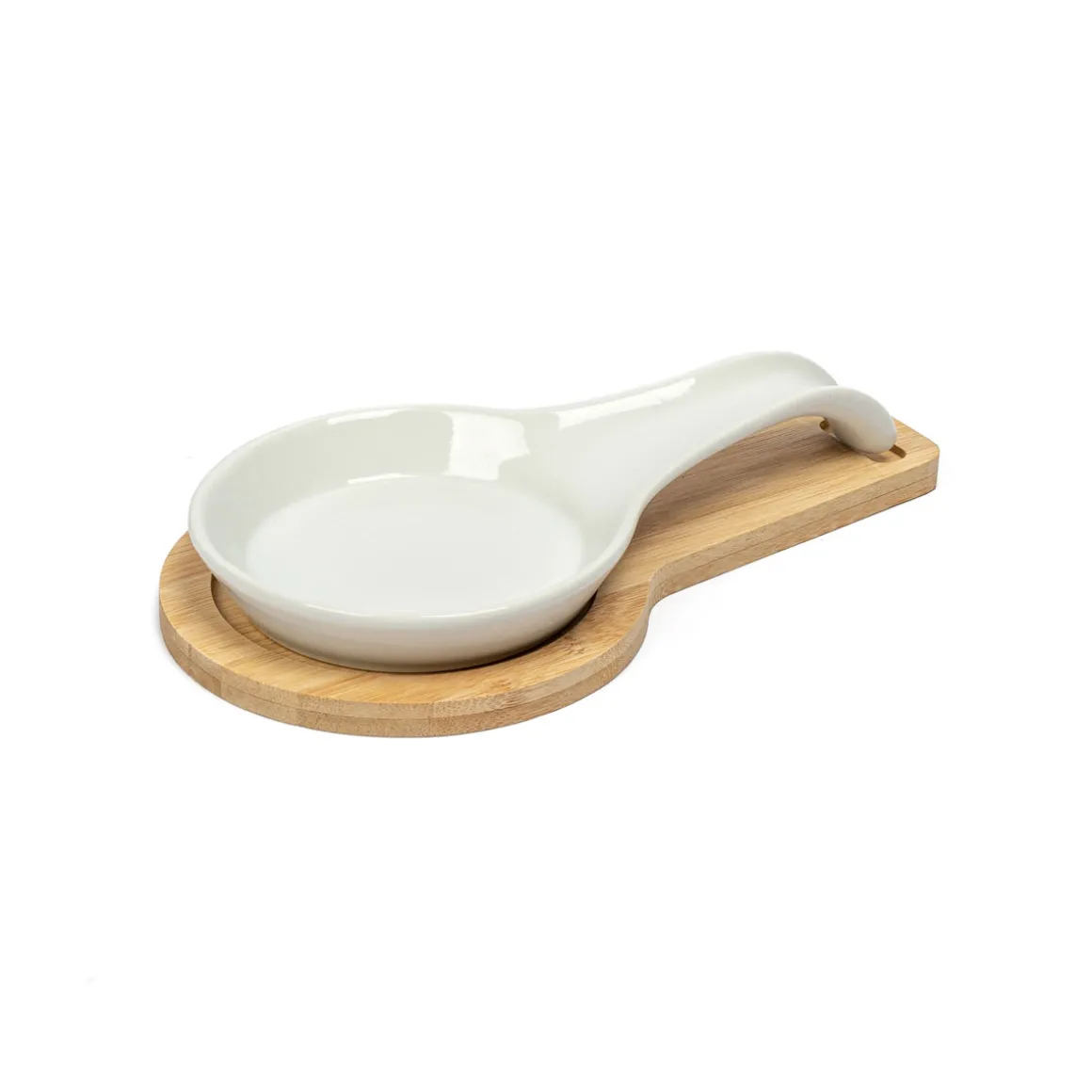 Reposacucharas De Cerámica Base De Bambú | Todo lo que tu mesa necesita está en homa.es, echa un vistazo a nuestra colección de vajillas, vasos, cubiertos, posavasos, soportes, etc. ¡Sirve con Happy Home Living, y todo sabrá mucho mejor! | Color: Blanco, Natural | Medidas: 3.5x13x23.5cm | Material: Cerámica, Bambú