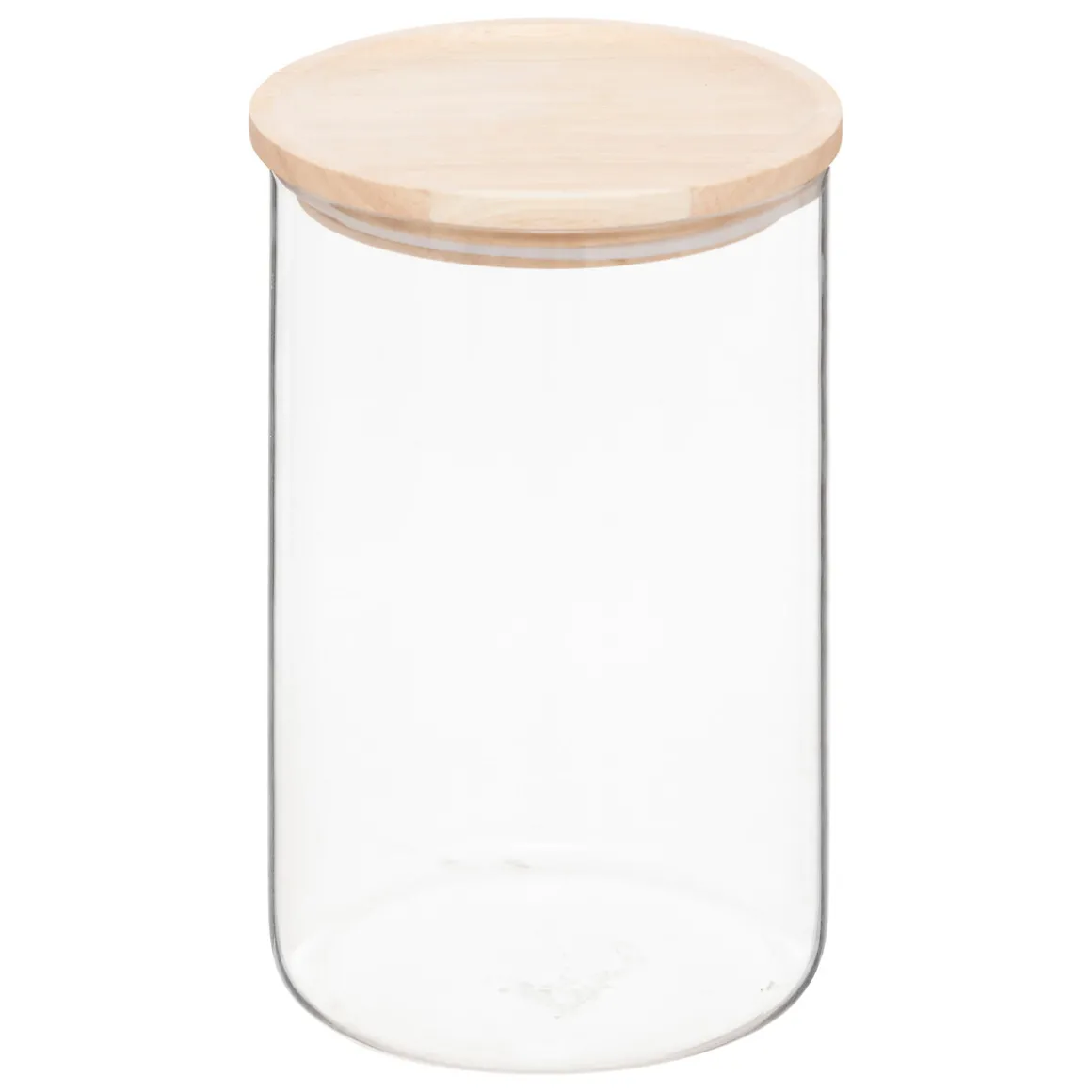 Set 3 tarros de vidrio con tapa de madera | 0,4/0,9/1,5L | ¿Sabías que tu cocina puede ser el lugar más feliz del mundo? Descubre nuestra gama de utensilios para una cocina llena de Happy Home Living. ¡Cocinar con los utensilios adecuados es mucho más fácil! | Color: Transparente, Beige | Medidas: 10x10x8,6cm / 0,4L | 10x10x16,4cm / 0,9L | 10x10x24,8cm / 1,5L | Material: Vidrio, Madera | Marca: 5Five