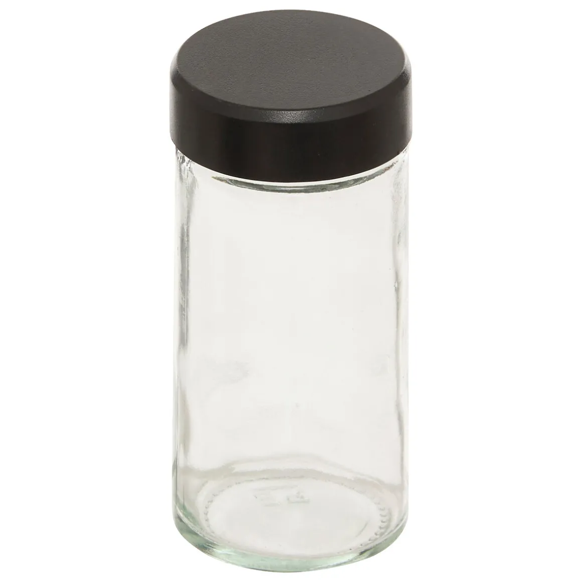 Set de 16 tarros negros con soporte giratorio | ¿Sabías que tu cocina puede ser el lugar más feliz del mundo? Descubre nuestra gama de utensilios para una cocina llena de Happy Home Living. ¡Cocinar con los utensilios adecuados es mucho más fácil! | Color: Negro | Medidas: 27,8x19cm | Material: Metal, Vidrio | Capacidad: 9cl