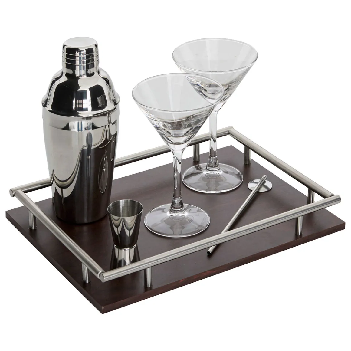 Set de 6 piezas para cocktail JULES | Las sugerencias para las mesas de navidad de la colección hô! hô! hôma! Son lindas, originales, clásicas y hacen la mágia acontecer. La preparación de las recetas tradicionales puede acontecer en un ambiente navideño rodeado de todos los accesorios y utensilios de cocina, y los sabores servidos en las vajillas más especiales. Añade amor a todo lo que vayas a servir y tendrás la mejor Navidad. | Color: Transparente y Marrón Oscuro | Medidas: 23.5×12.2×31.5cm | Material: Vidrio y Mdf | Marca: 5Five