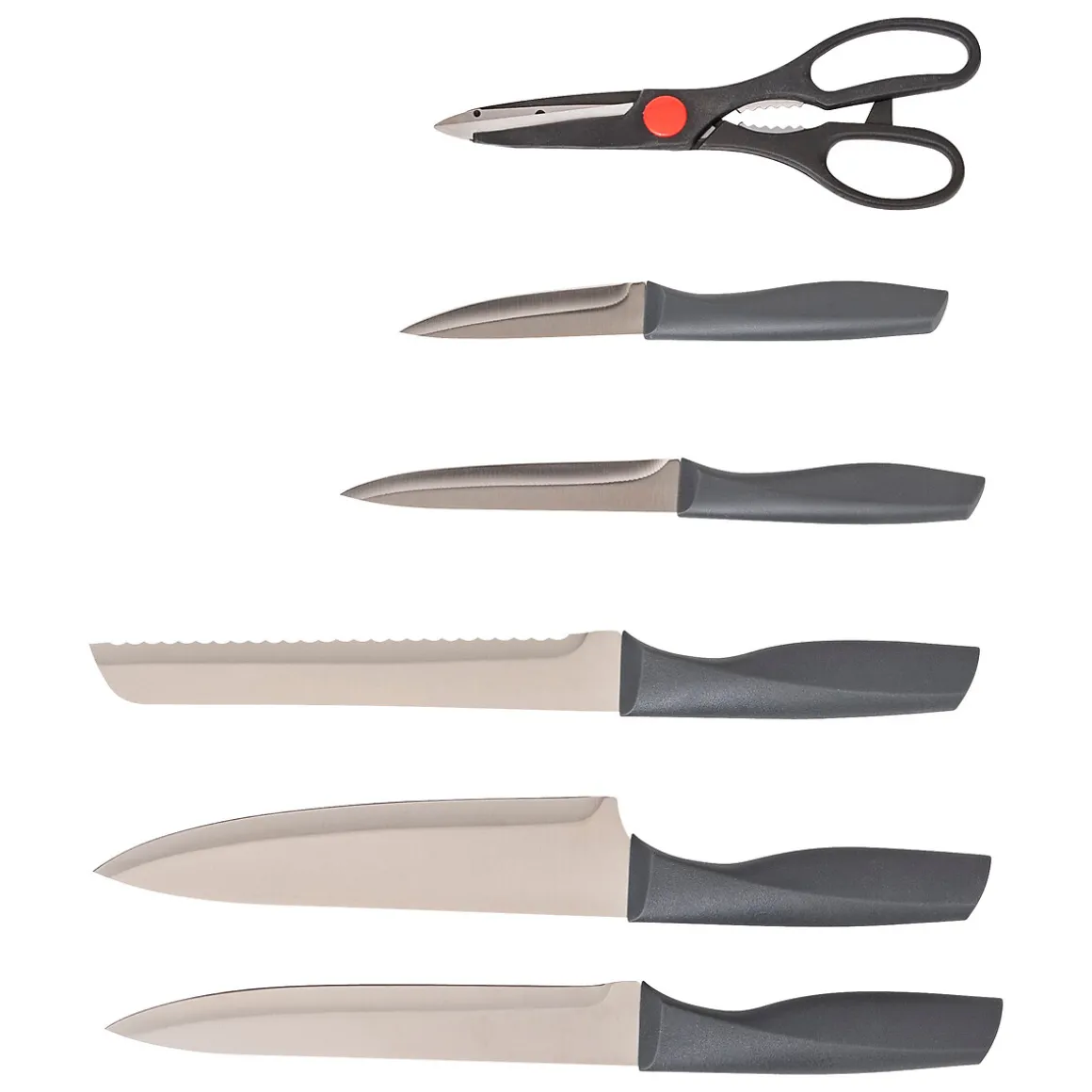Set de cuchillos y tijeras con soporte NÉO | ¿Sabías que tu cocina puede ser el lugar más feliz del mundo? Descubre nuestra gama de utensilios para una cocina llena de Happy Home Living. ¡Cocinar con los utensilios adecuados es mucho más fácil! | Color: Gris | Material: Acero inoxidable, Polipropileno | Marca: 5Five