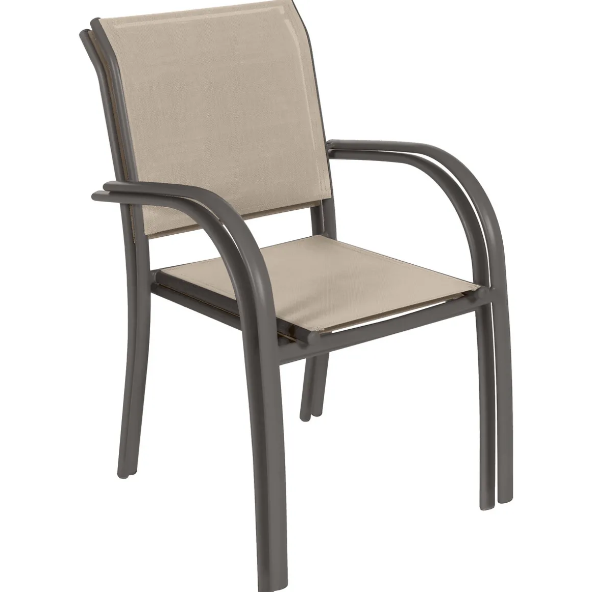 Silla PIAZZA lino y tonka | 88x65x56cm | Líneas redondeadas y revestimiento de textilene ofrecen un asiento confortable | Producto apilable, fácil de almacenar para un verdadero ahorro de espacio | Para una mejor armonía, combina este producto con los de la gama Piazza | Estructura con tratamiento epoxi antioxidante | Color: lino y tonka | Medidas: 88x65x56cm | Material: Aluminio, Textilene | Colección: Piazza | Marca: Hespéride