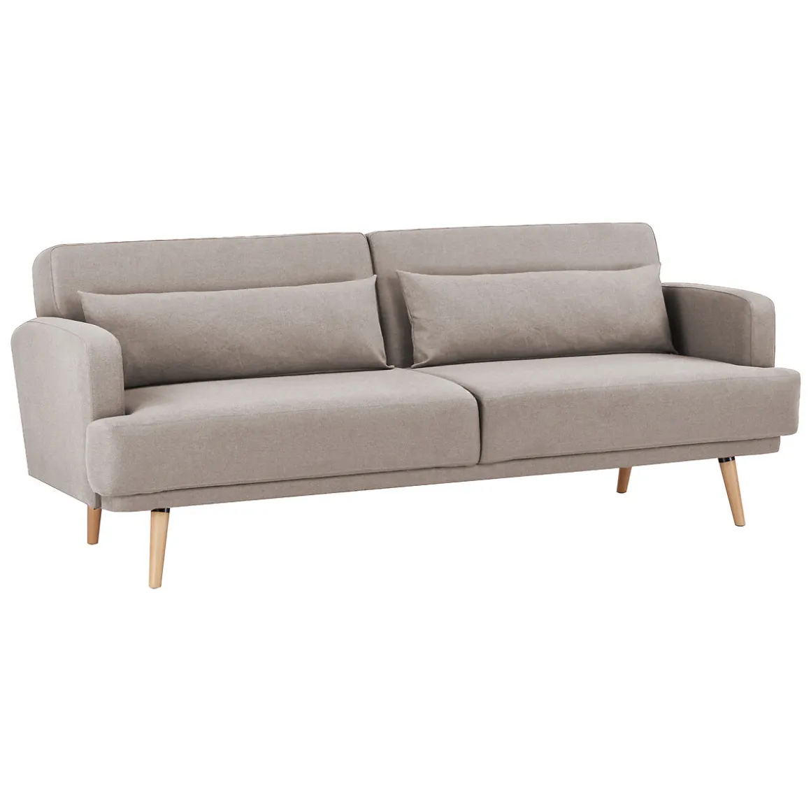 Sofa cama JACK beige de tejido | 83x86x214cm/110x190cm | 3 Plazas | 2 Almohadas incluidas | Descubre los muebles que tenemos para ti. El mobiliario hôma fue pensado para Home Happy Living. Los mejores artículos de decoración están aquí. | Color: Beige | Medidas: 83x86x214cm/110x190cm | Material: Madera de Pino, Poliéster | Marca: Atmosphera