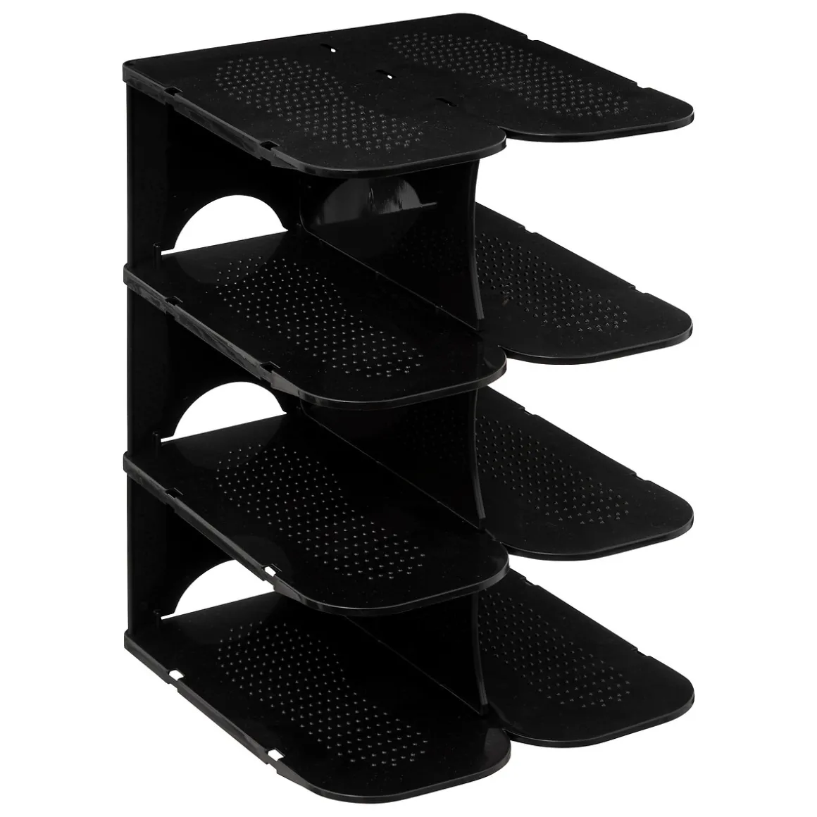 Soporte Negro Antideslizante Para 4 Pares Zapatos | Zapatero de plástico para montar, ideal para armarios y para economizar espacio. Textura antideslizante para estabilidad del calzado. Fácil de montar. Modular y apilable | Conoce este y más artículos que tenemos disponibles para tu closet . Almacenar y organizar tus armarios y roperos nunca fue tan fácil. Descubre la gama de Almacenaje hôma | Color: Negro | Medidas: 37.8×24.5×26.5cm | Material: Polipropileno