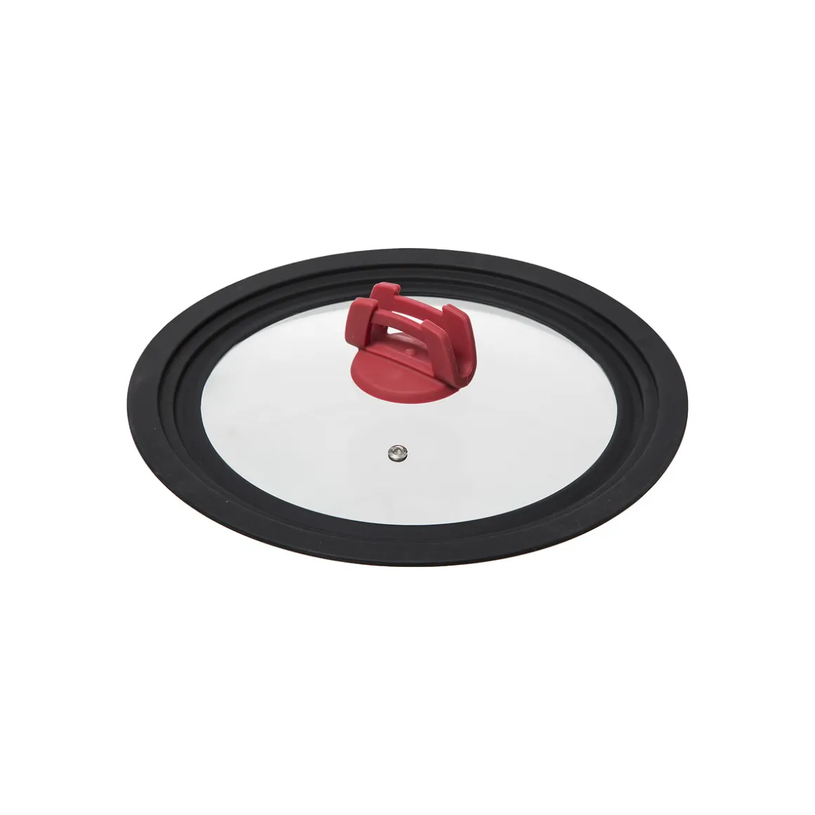 Tapa De Vidrio/Silicona 16/18/20cm | Descubre todo para tu cocina y horno en homa.es Ollas, sartenes y cazuelas para cualquier tipo de cocina. Encuentra aquí los accesorios de cocina y utensilios de horno para todas tus recetas | Color: Negro/Transparente/Rojo | Medidas: 6.5×21.5×21.5cm | Material: Vidrio/Silicona | Marca: 5Five