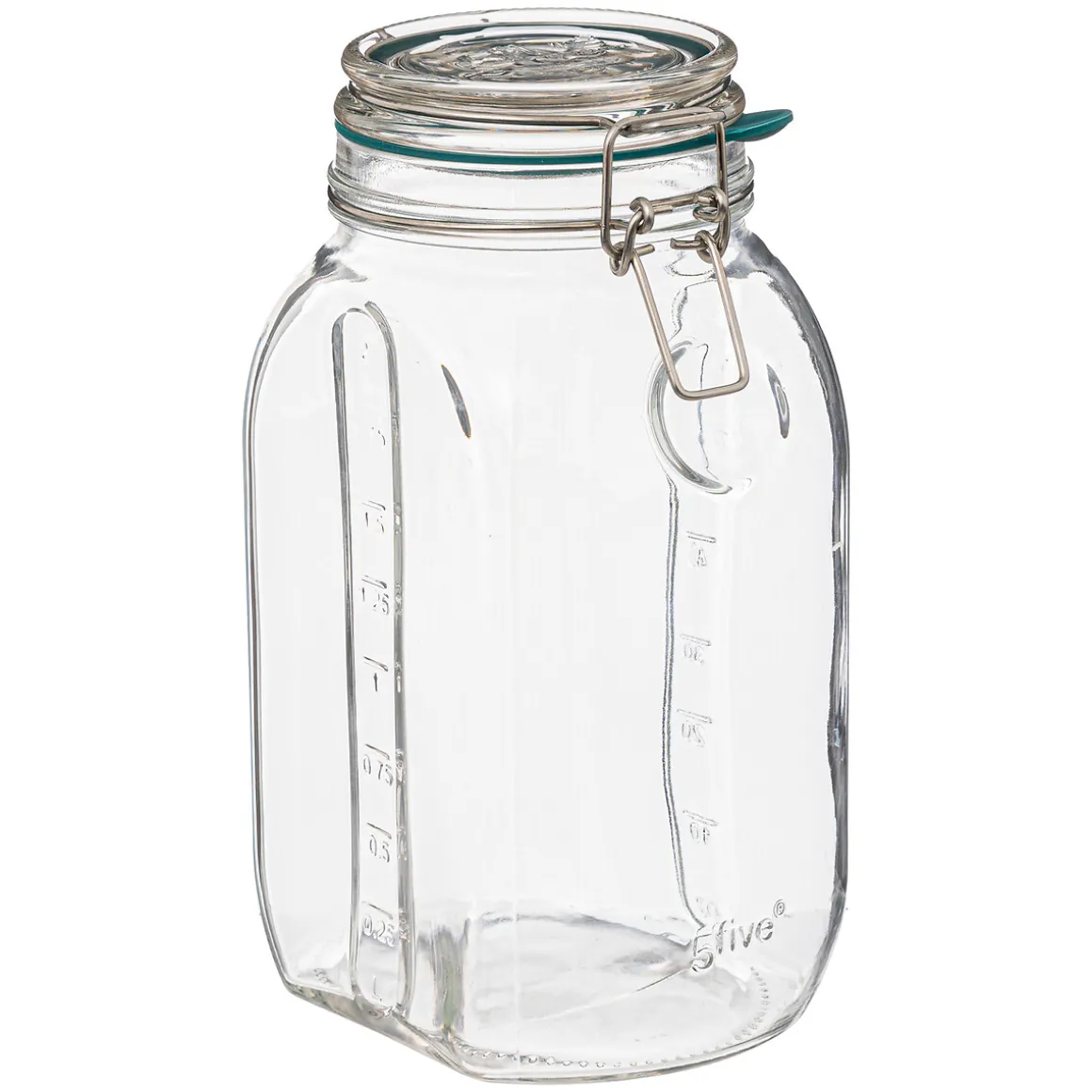 Tarro De Vidrio Tapa Hermética 2L | ¿Sabías que tu cocina puede ser el lugar más feliz del mundo? Descubre nuestra gama de utensilios para una cocina llena de Happy Home Living. ¡Cocinar con los utensilios adecuados es mucho más fácil! | Color: Transparente | Medidas: 22.3×14.5×9.5cm | Material: Vidrio | Capacidad: 2L | Marca: 5Five