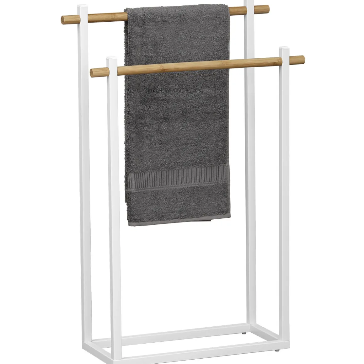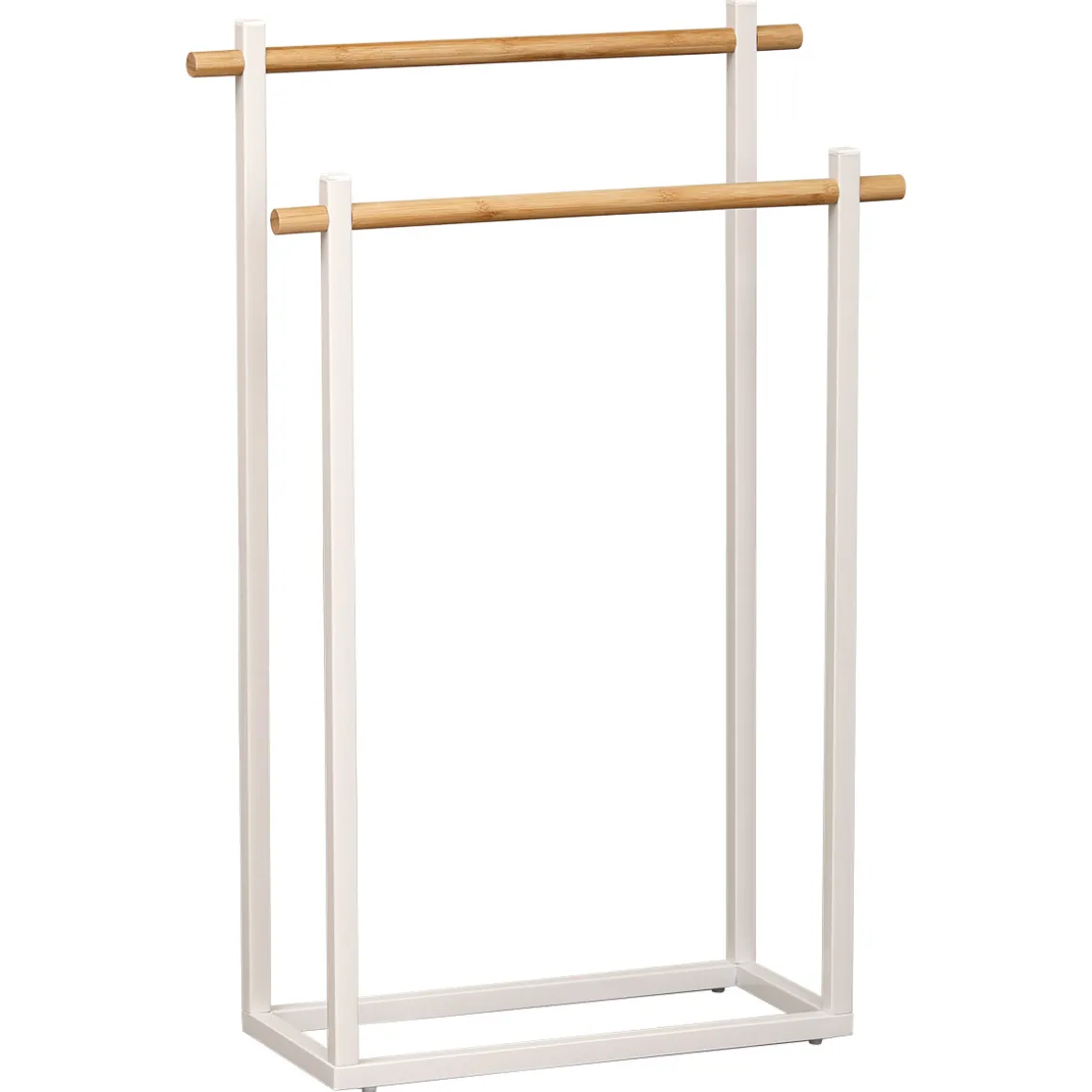 Toallero Con 2 Barras De Metal Y Bambú | Los accesorios y la organización del baño son esenciales para que tus rutinas más personales te traigan todo el bienestar que te mereces. ¡Conoce nuestra colección de accesorios para el baño! | Color: Blanco, Marrón | Medidas: 82x22x53cm | Material: Bambú, Metal