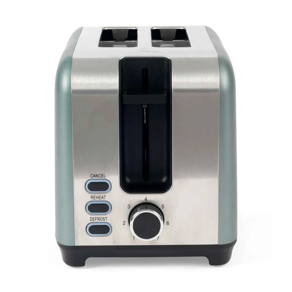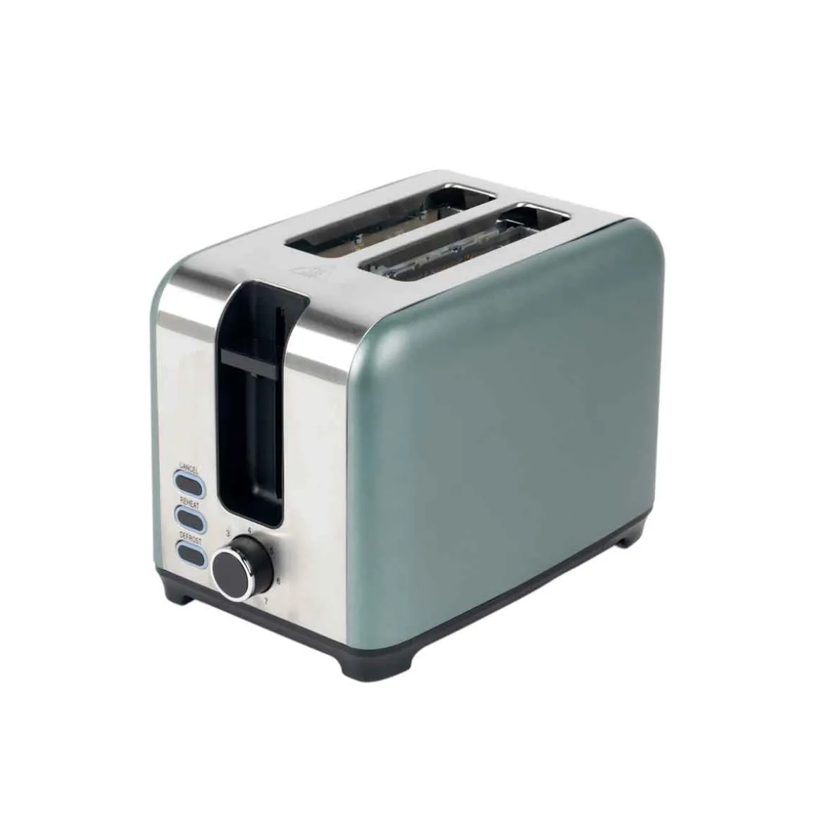 Tostadora de 2 rebanadas PROGRESS SHIMMER | Potencia máxima: 930w | Funciones de descongelación y recalentamiento. 7 ajustes de calor. Con bandeja recogemigas fácil de extraer. | ¿Sabías que tu cocina puede ser el lugar más feliz del mundo? Descubre nuestra gama de utensilios para una cocina llena de Happy Home Living. ¡Cocinar con los utensilios adecuados es mucho más fácil! | Color: Verde | Medidas: 19.8×18.5x31cm | Material: Acero inoxidable