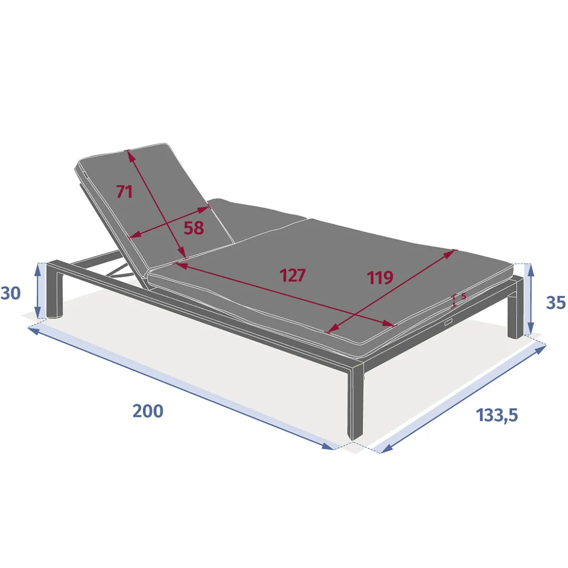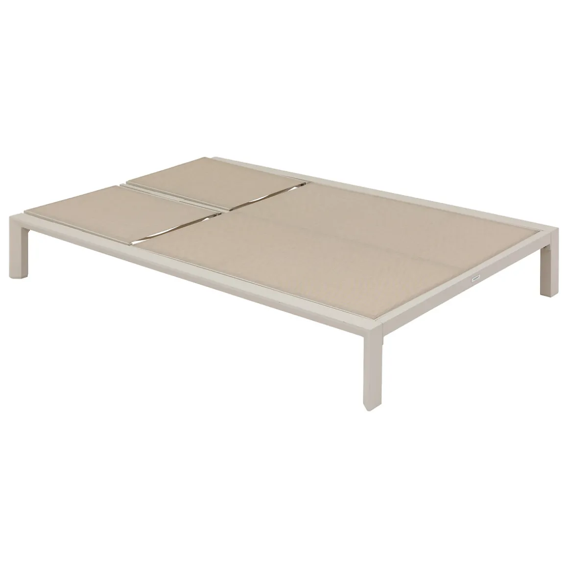 Tumbona doble ÉVASION argile | 30x200x133.5cm | Estructura con tratamiento epoxi antioxidante | Hasta 5 posiciones de reclinado | Posición 100% reclinable para un confort óptimo | Fácil de desplazar gracias a las ruedas | Peso máximo soportado por persona: 110Kg | Color: Arcilla | Medidas: 30x200x133.5cm | Material: Aluminio, Texaline | Marca: Hespéride