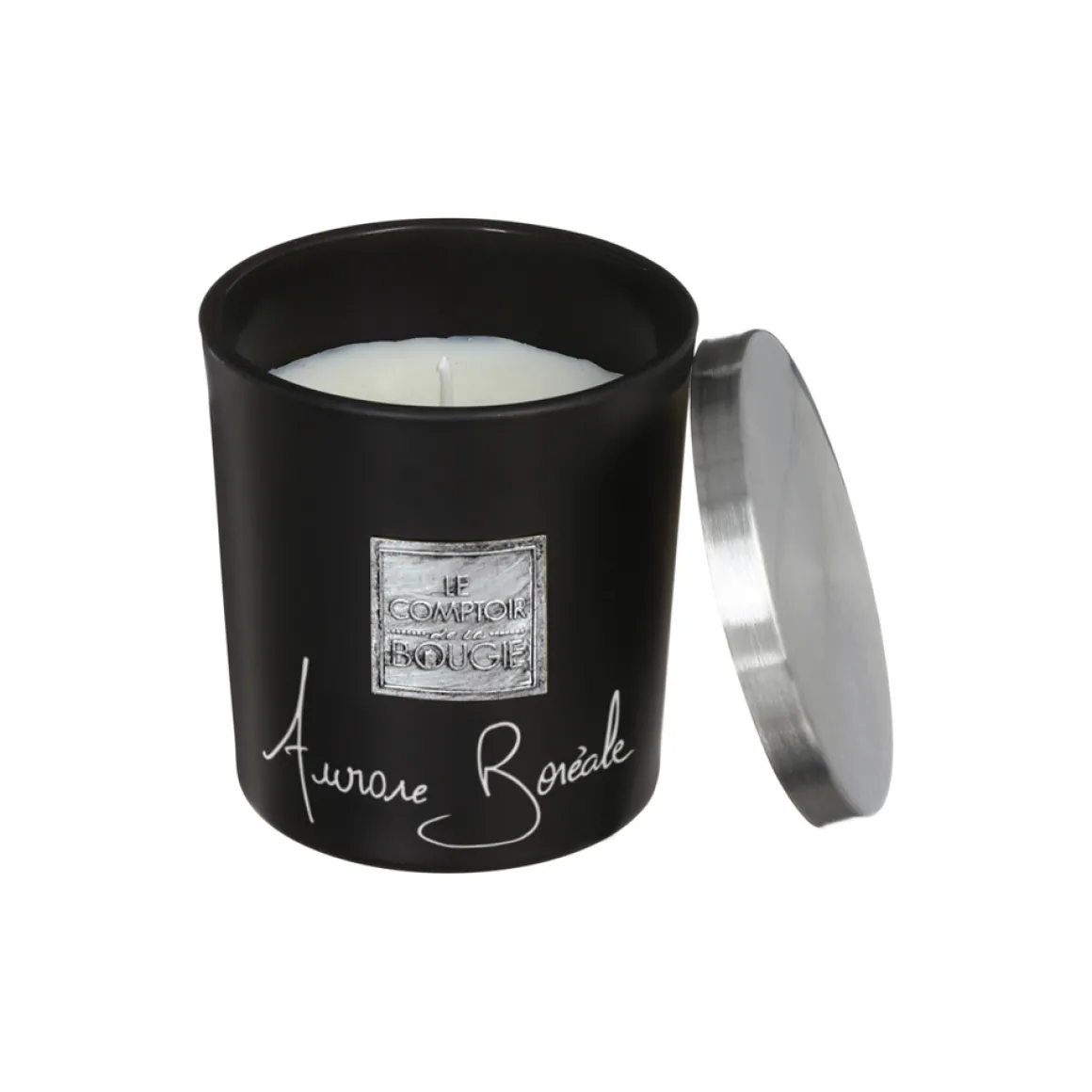Vela Perfumada Con Tarro Negro Aurora Boreal | Peso: 130g | Descubre nuestra gama de velas y velones decorativos para el hogar. La mejor decoración para tu hogar está en hôma | Material: Vidrio, Cera | Medidas: 7×7.5cm