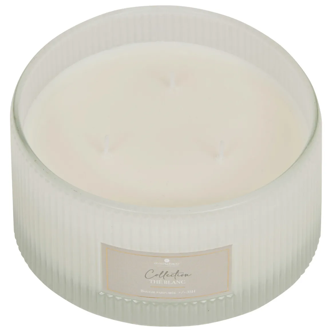 Vela perfumada con portavelas de vidrio COLLECTION thé blanc 635gr | Descubra nuestra gama de velas y velones decorativos para el hogar. La mejor decoración para el hogar es hôma. | Color: Blanco | Medidas: 8,1×15,1×15,1cm | Material: Vidrio y Parafina | Aroma: Thé Blanc | Capacidad: 635gr | Marca: Atmosphera