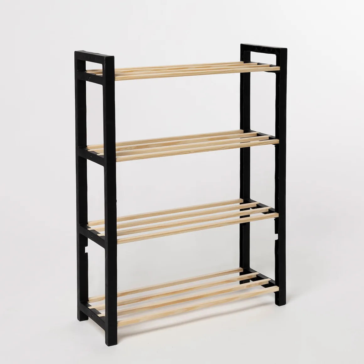 Zapatero con 4 niveles negro de madera | 70.5x45x23.5cm | Descubre este y otros artículos que tenemos disponibles para tu hogar. !Ordenar y organizar nunca há sido tan fácil! Descubre nuestra gama de organización hôma. | Color: Negro | Medidas: 70.5x45x23.5cm | Material: Madera y Plástico