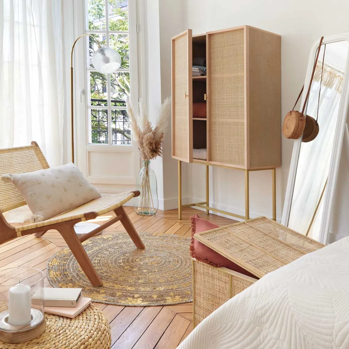Alfombra dorada de yute 115cm | ¡En homastores.com encontrarás alfombras para toda tu casa! Alfombras de salón, alfombras de dormitorio, alfombras redondas, etc. Tus pies te lo agradecerán y el espacio ganará una nueva dimensión con nuestras propuestas de decoración para el suelo | Color: Dorado | Medidas: 115cm | Material: Yute