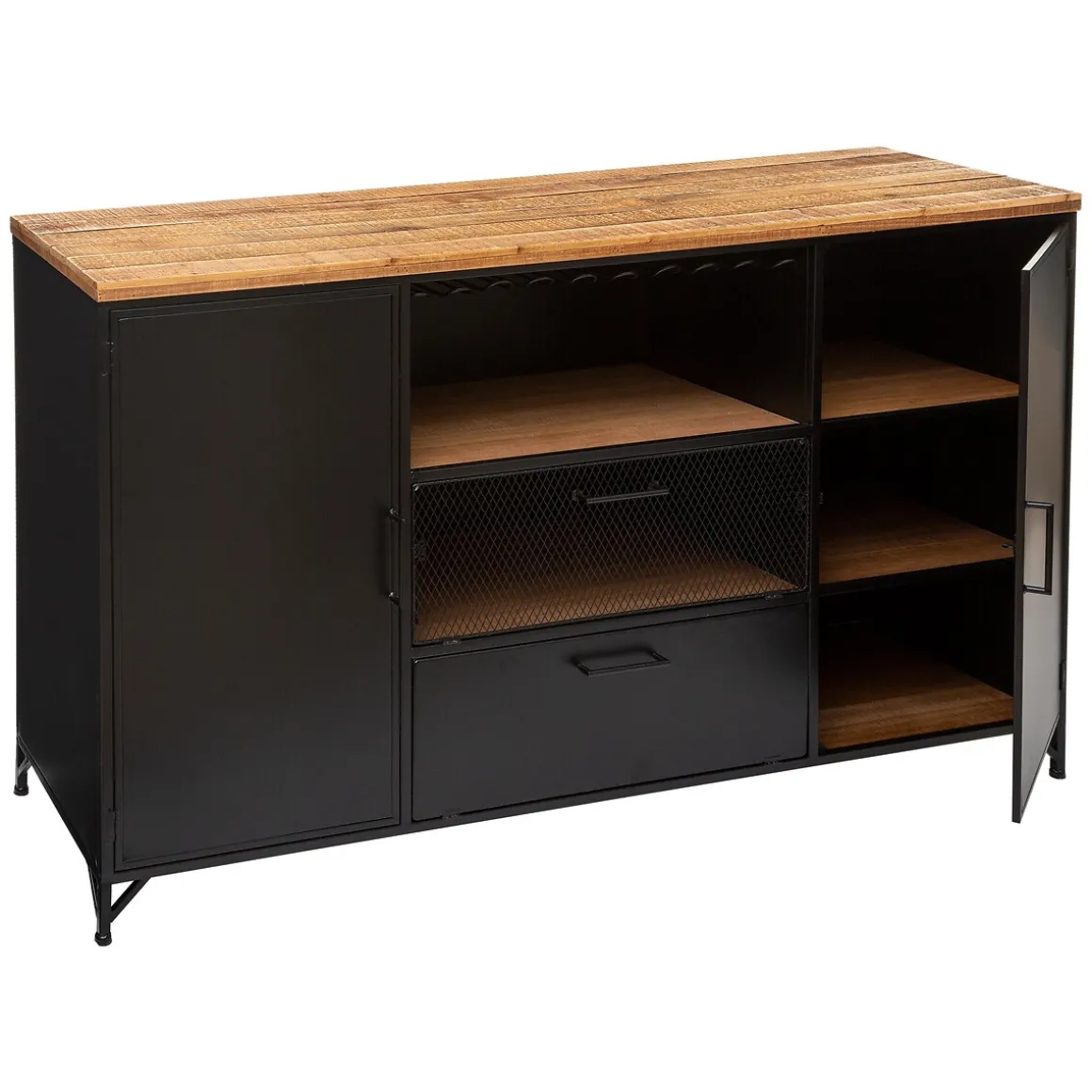 Aparador Cierna Negro/Marrón 2 Puertas 2 Cajones 85×42.5x140cm | Medidas 2 Cajones: 22cm | 1 Puerta de malla | 1 Puerta Macisa | 2 Estantes Detrás De Cada Puerta, Superior: Altura 25cm, Inferior: 22cm | Descubre todos los tipos de muebles que tenemos disponibles para ti. Los muebles hôma fueron diseñados para Home Happy Living. Los mejores artículos de decoración están aquí | Color: Negro, Marrón | Medidas: 85×42.5x140cm | Material: Metal, Mdf, Madera de Abeto | Marca: Atmosphera
