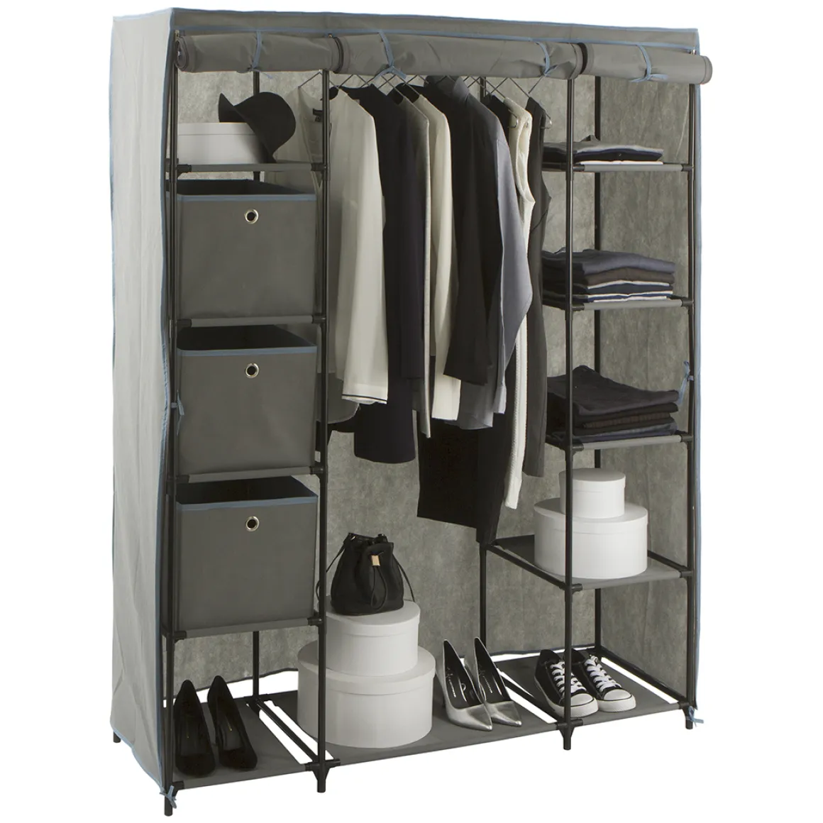 Armario Con Estantes Y 3 Cajas | Conoce este y más artículos que tenemos disponibles para tu vestidor. ¡Ordenar y organizar tus armarios y vestidores nunca ha sido tan fácil! Descubre la gama de almacenaje hôma | Color: Gris | Medidas: 170x44x130cm | Material: Metal, Polipropileno | Marca: 5Five