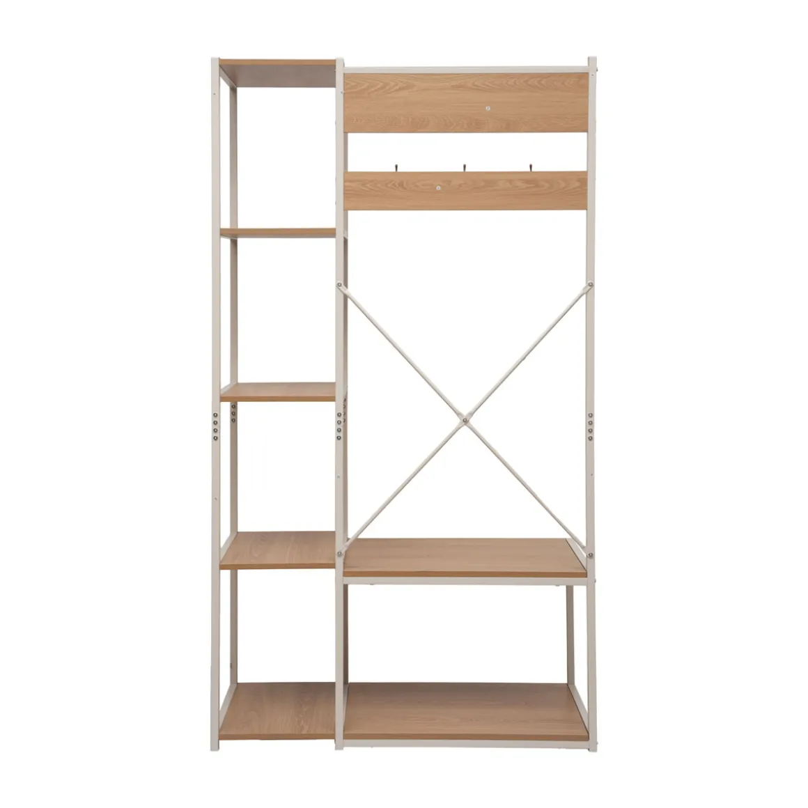 Armario de entrada con perchero y estantes | 178x45x99cm | Conoce este y más artículos que tenemos disponibles para tu closet . Almacenar y organizar tus armarios y roperos nunca fue tan fácil. Descubre la gama de Almacenaje hôma | Color: Natural, Beige | Medidas: 178x45x99cm | Material: MDF, Metal