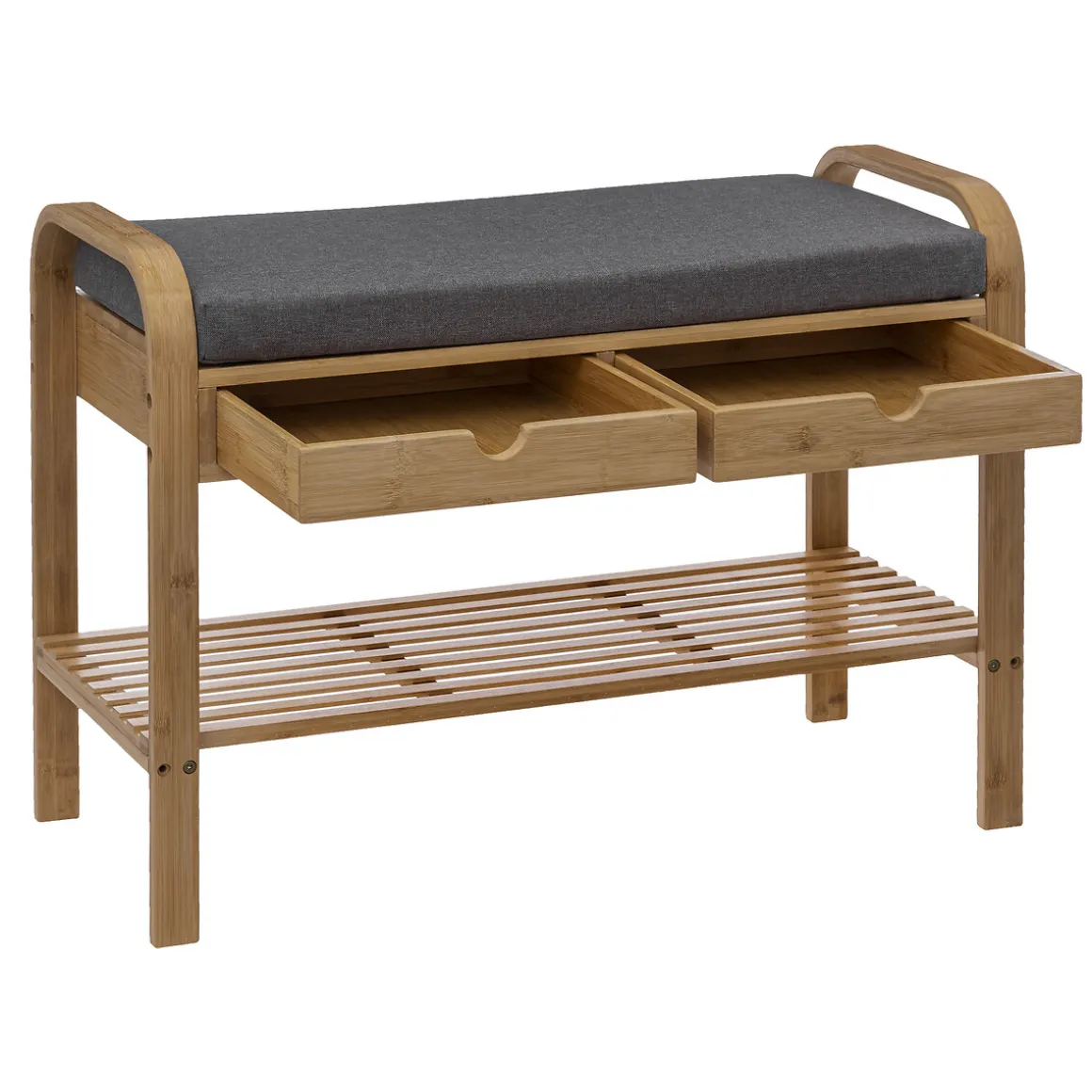 Banco Con Estante Jano De Bambú | Conoce este y más artículos que tenemos disponibles para tu vestidor. ¡Ordenar y organizar tus armarios y vestidores nunca ha sido tan fácil! Descubre la gama de almacenaje hôma | Color: Marrón | Medidas: 55x34x74cm | Material: Bambú, Poliéster