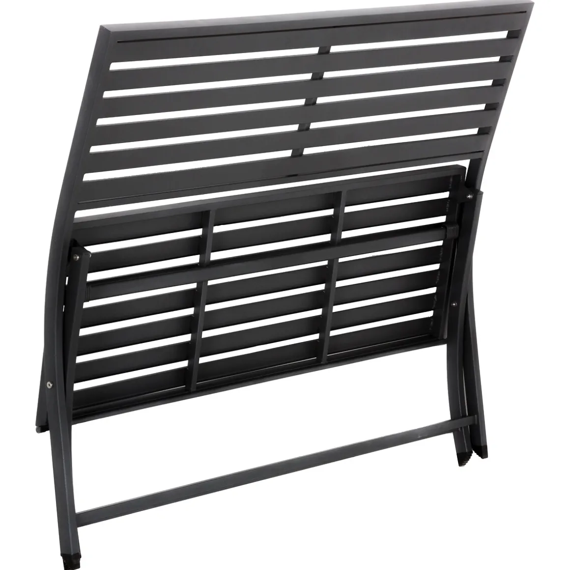 Banco plegable OLBIA gris graphite de metal | 3 Plazas | Disfruta de tu jardín con el bonito banco plegable Olbia Grafito de Hespéride. Este banco de exterior ofrece 3 plazas, tiene una estructura de acero con tratamiento epoxi y es fácil de montar. | Medidas: 122x57x89cm