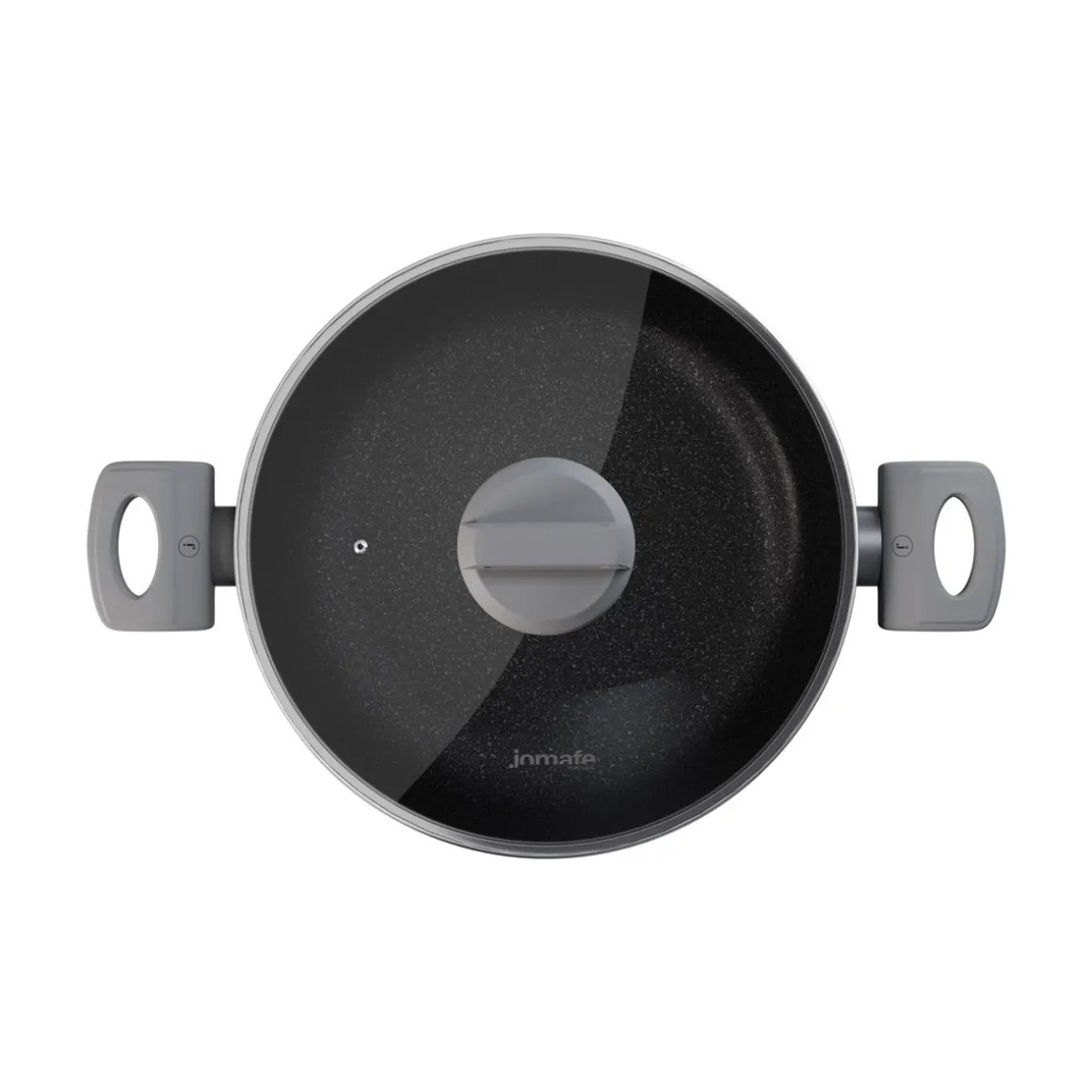 Cacerola Chicago Con Tapa De Vidrio 28cm | Fabricada en aluminio prensado, recubrimiento antiadherente en spray, fondo de inducción, con distribución uniforme del calor, mango recubierto de silicona | Apta para todas las fuentes de calor | Fácil de lavar, ligera y fácil de manejar | Descubre todo para tu cocina y horno en homa.es . Ollas, sartenes y cacerolas para cualquier tipo de cocina | Medidas: 28cm | Material: Aluminio