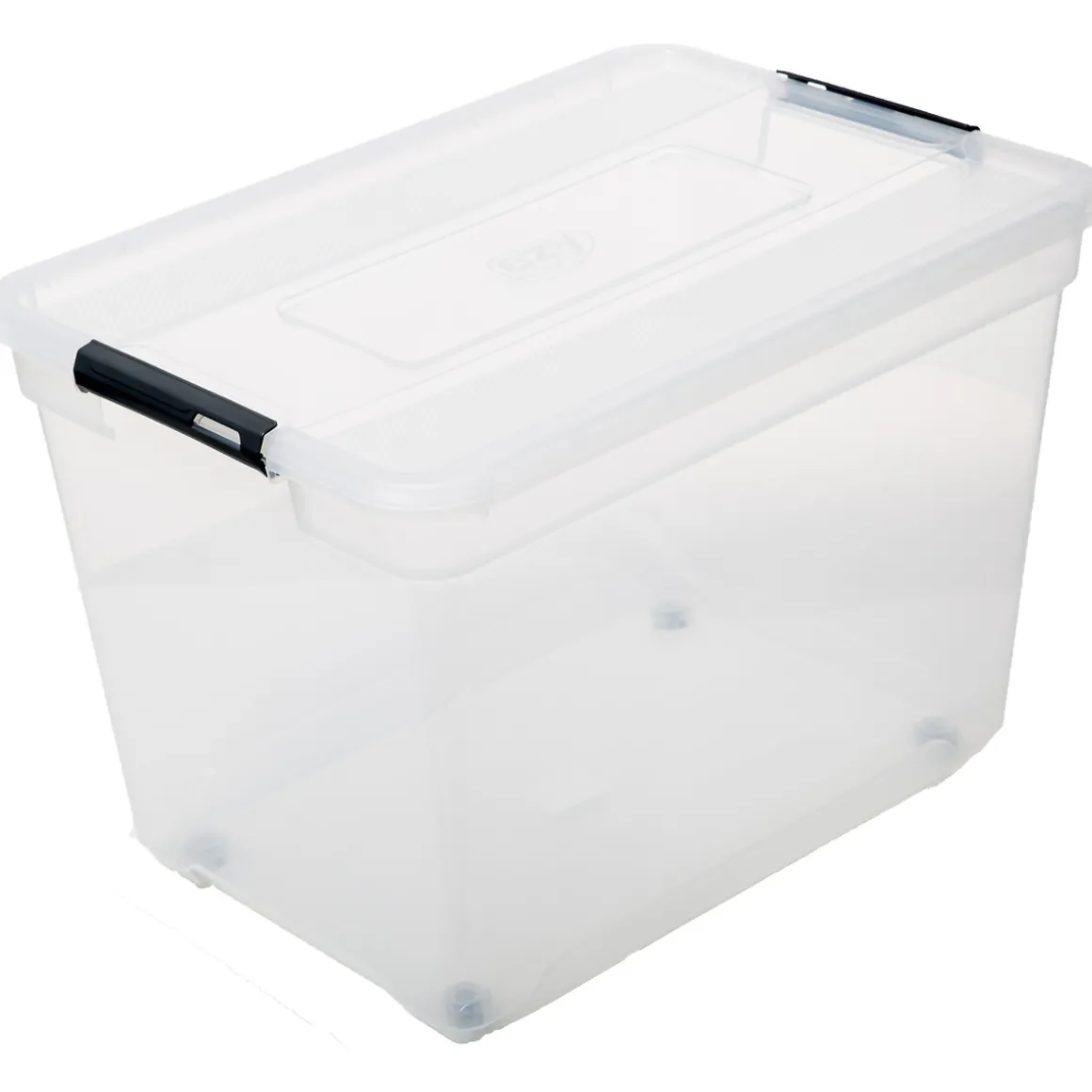 Caja De Almacenaje 100L Solutions | Prácticas asas con bisagras que permiten la apertura de la caja sólo por un lado. Ruedas bidireccionales | Conoce este y más artículos que tenemos disponibles para tu hogar. ¡Ordenar y organizar nunca ha sido tan fácil! Descubre la gama de almacenaje hôma | Color: Transparente | Medidas: 46×47.5×66.6cm | Material: Polipropileno | Capacidad: 100L