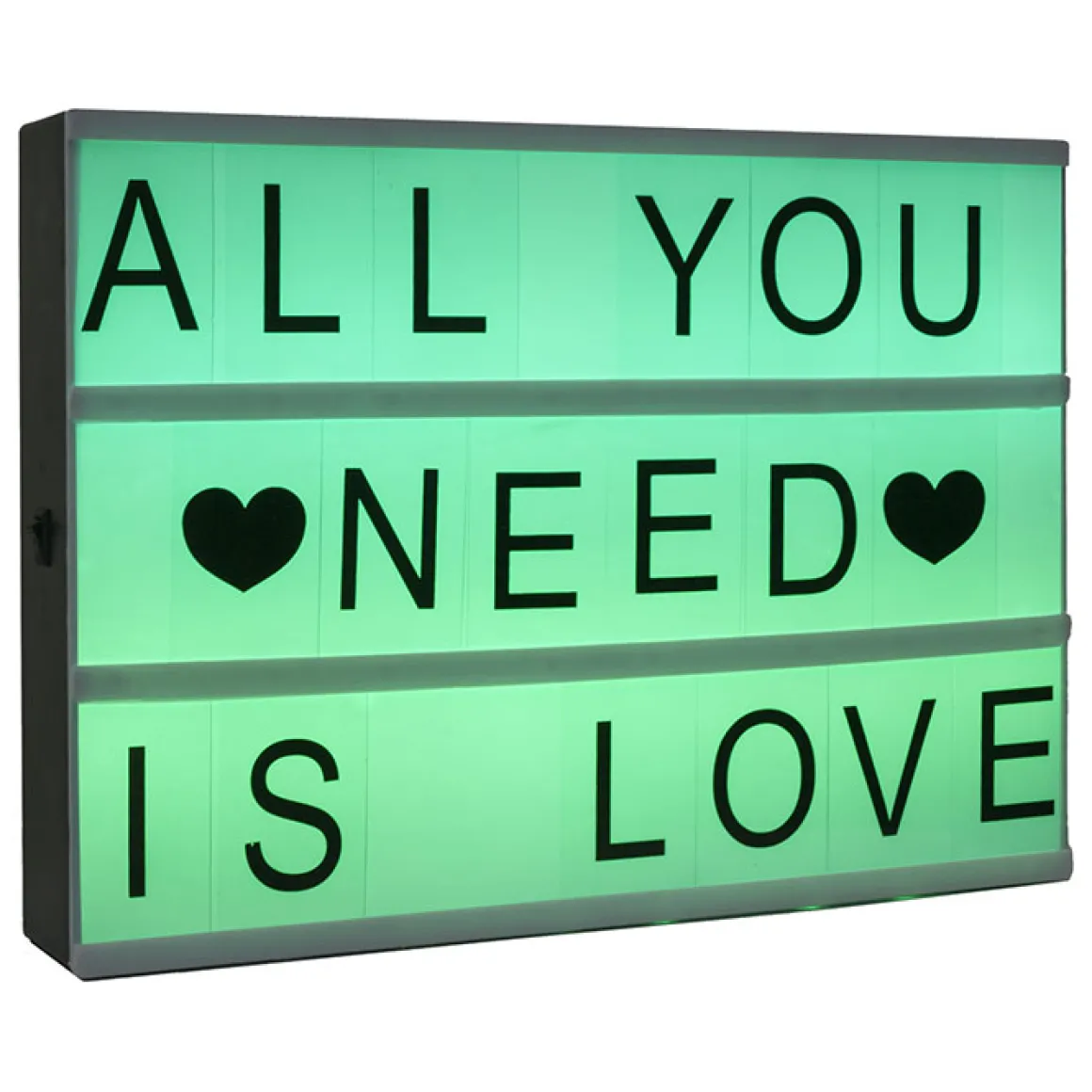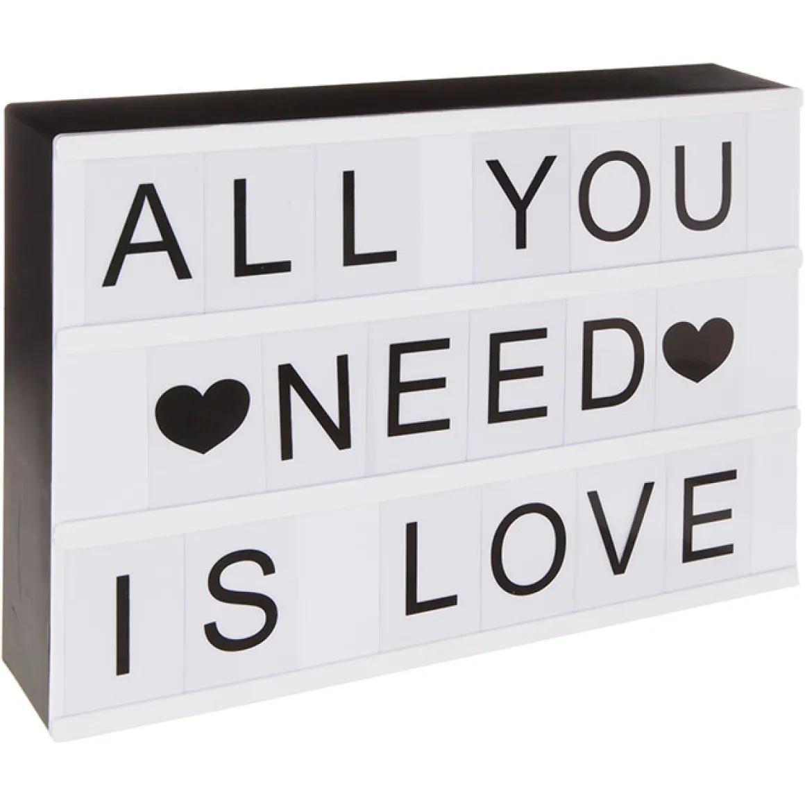 Caja De Luz Con Mensaje A4 | 22x6x30cm | Cuadro luminoso Medidas A4, con luces de diferentes colores (rosa, amarillo, azul y verde) | Incluye 82 letras, números y símbolos para que puedas personalizar tu mensaje | Funciona con pilas (3xAA LR6 / no incluidas) | En hôma encontrarás los mejores complementos decorativos para tu hogar | Color: Multicolor | Medidas: 22x6x30cm | Material: Poliestireno | Marca: Atmosphera