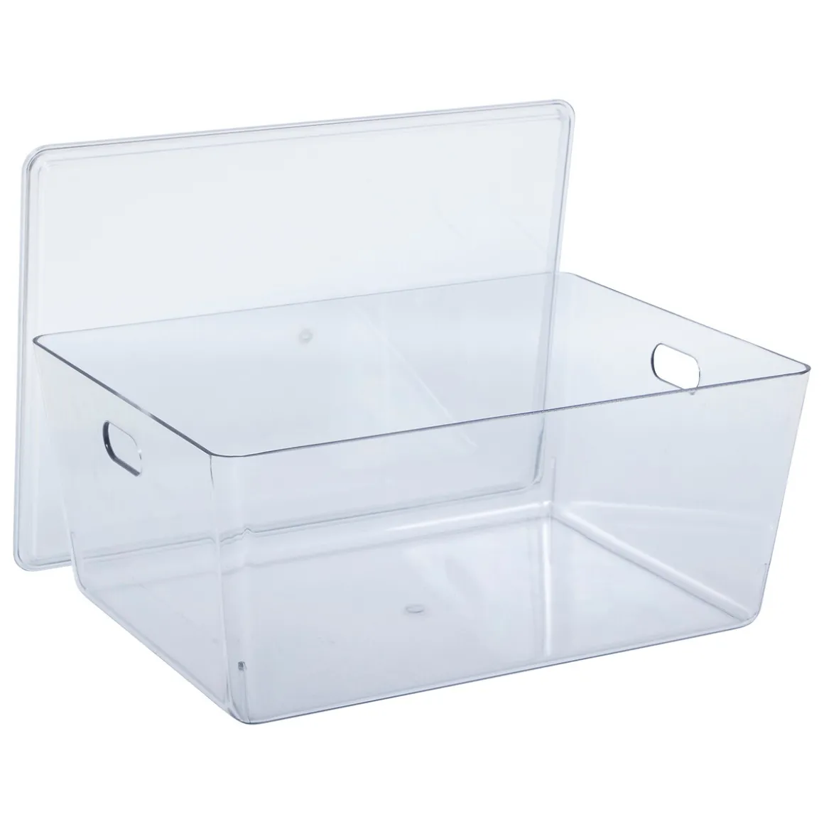 Caja organizadora SELENA con tapa 11l | 15.3x35x26cm | Conoce este y más artículos que tenemos disponibles para tu closet . Almacenar y organizar tus armarios y roperos nunca fue tan fácil. Descubre la gama de Organización hôma | Color: Transparente | Medidas: 15.3x35x26cm | Material: PET, Polipropileno | Capacidad: 11L | Marca: 5Five | Colección: Selena