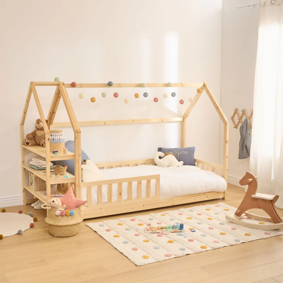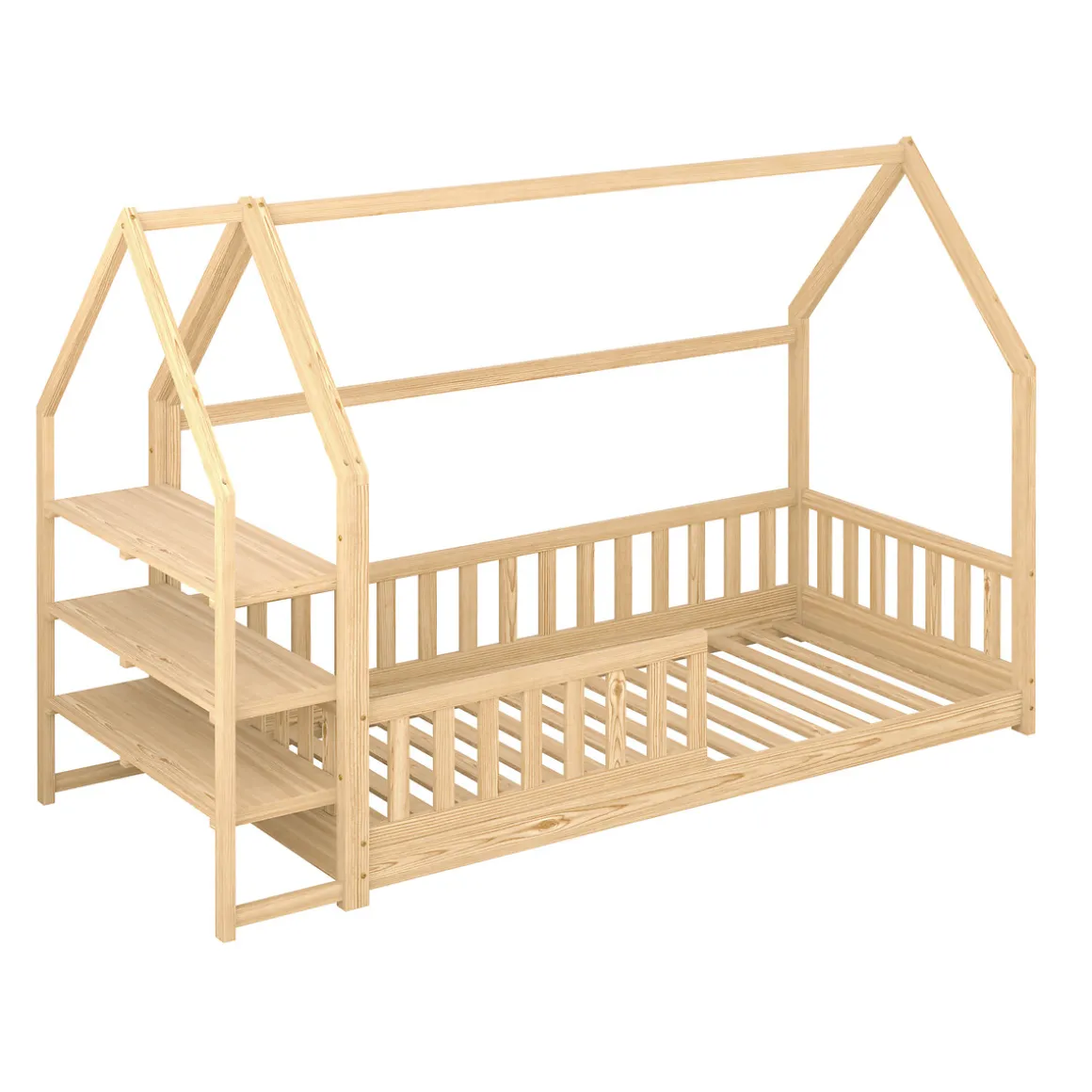 Cama Montessori con estantes 90x190cm | ¡Descubra nuestra colección de mobiliario infantil! Con hôma kids es fácil ofrecer a los más pequeños aventuras y mundos imaginarios. Muebles para la habitación del bebé y zonas de juego | Color: Natural | Medidas: 90x190cm | Material: MDF