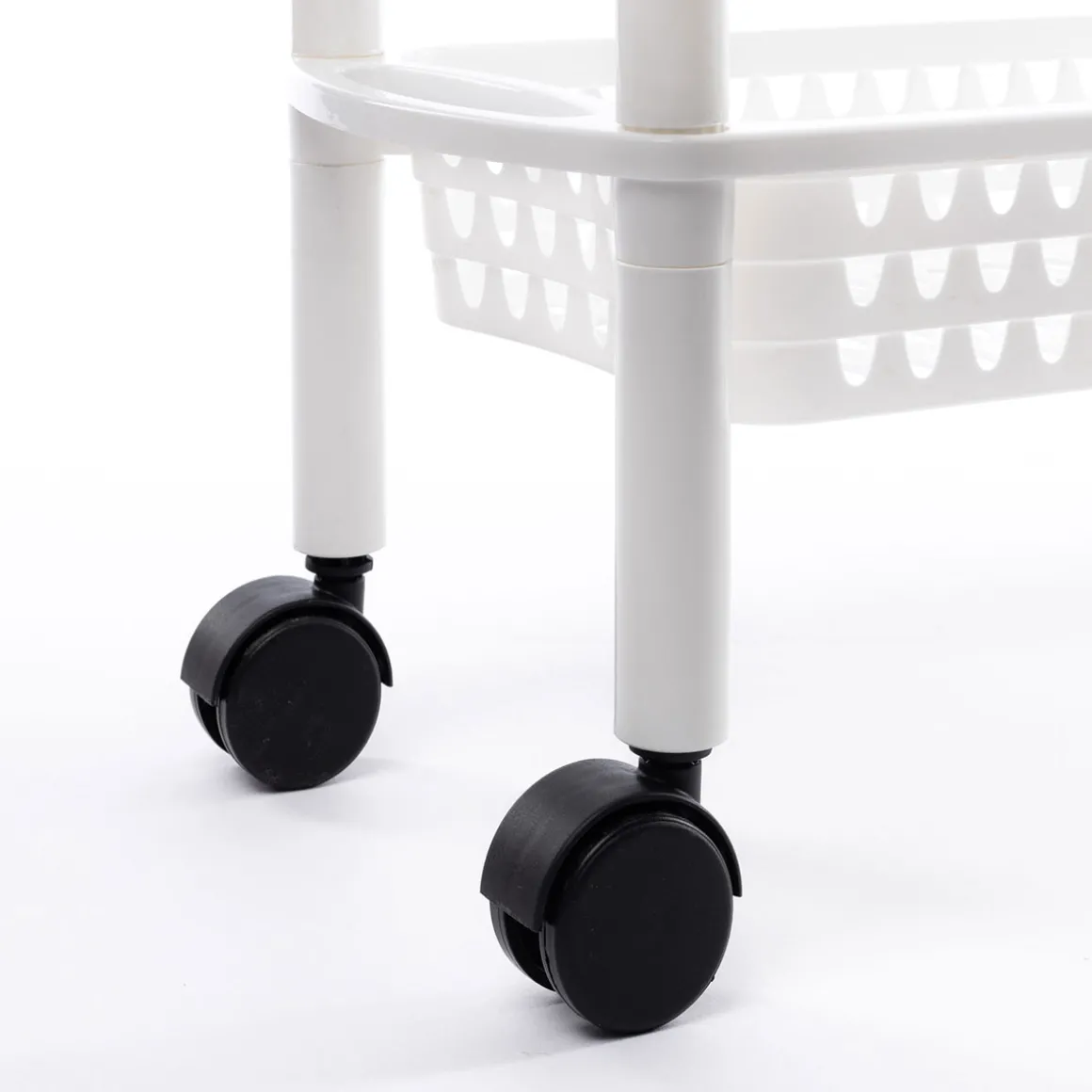 Carrito auxiliar con 3 cestos blanco | La practicidad en la cocina es esencial y empieza con soluciones de almacenaje eficaces. Desde el carro de apoyo, hasta el botellero o los cubos de basura y de reciclaje, encuéntralo todo en homastores.com | Color: Blanco | Medidas: 62.5x18x58cm | Material: Pvc