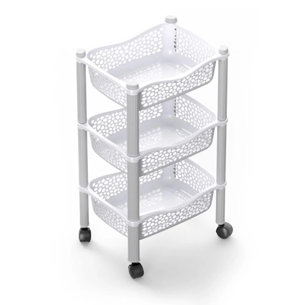 Carrito De Cocina Con 3 Cestas Blancas | La practicidad en la cocina es esencial y empieza con soluciones de almacenaje eficaces. Desde el carro de apoyo, hasta el botellero o los cubos de basura y de reciclaje, encuéntralo todo en homa.es | Medidas: 67x38x30cm | Materiales: Polipropileno