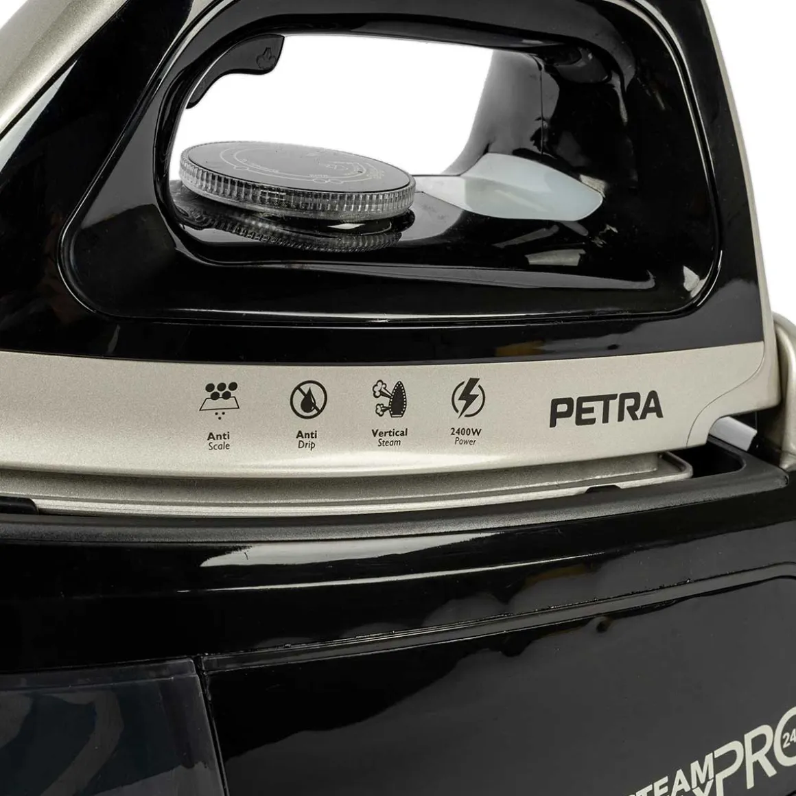 Centro De Planchado Petra 2400W | Depósito de agua removible 1.2L | Base de cerámica | Alimentación por cable. Cable 2M | Cuida de la higiene y limpieza del hogar con los accesorios y productos de limpieza adecuados, manteniendo tu casa limpia y el ambiente saludable. En la sección de Limpieza de las tiendas hôma encontraras todos los productos y accesorios de limpieza que tu casa necesita. | Color: Negro | Medidas: 28.6×21.6×40.5cm