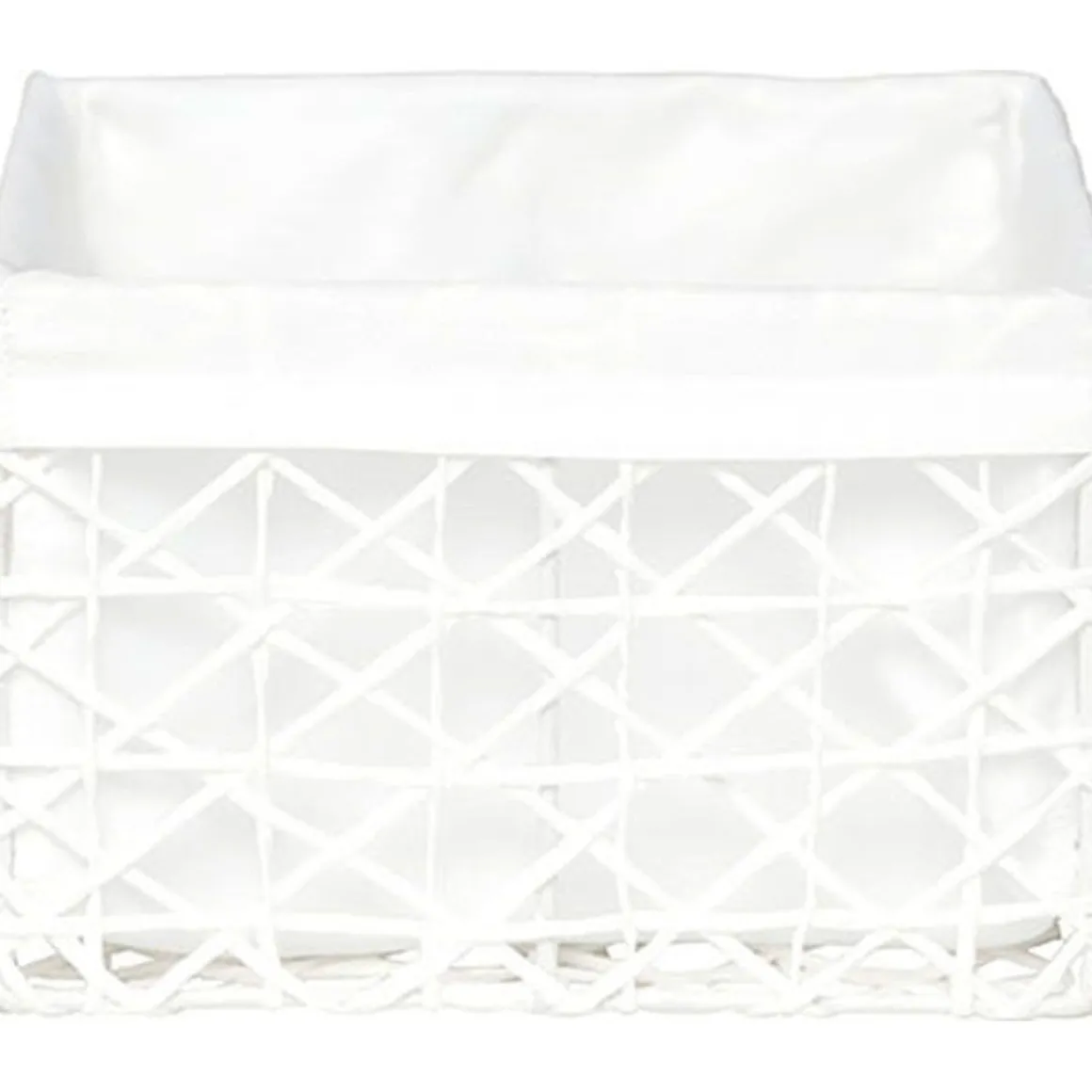 Cesta de baño blanca forrada con tejido | 18x21x14cm | Los accesorios de Baño y de organización son esenciales para que las rutinas más personales te proporcionen todo el bienestar que mereces. Conoce nuestra nueva colección de accesorios de baño | Color: Blanco | Medidas: 18x21x14cm | Material: Poliéster, Papel