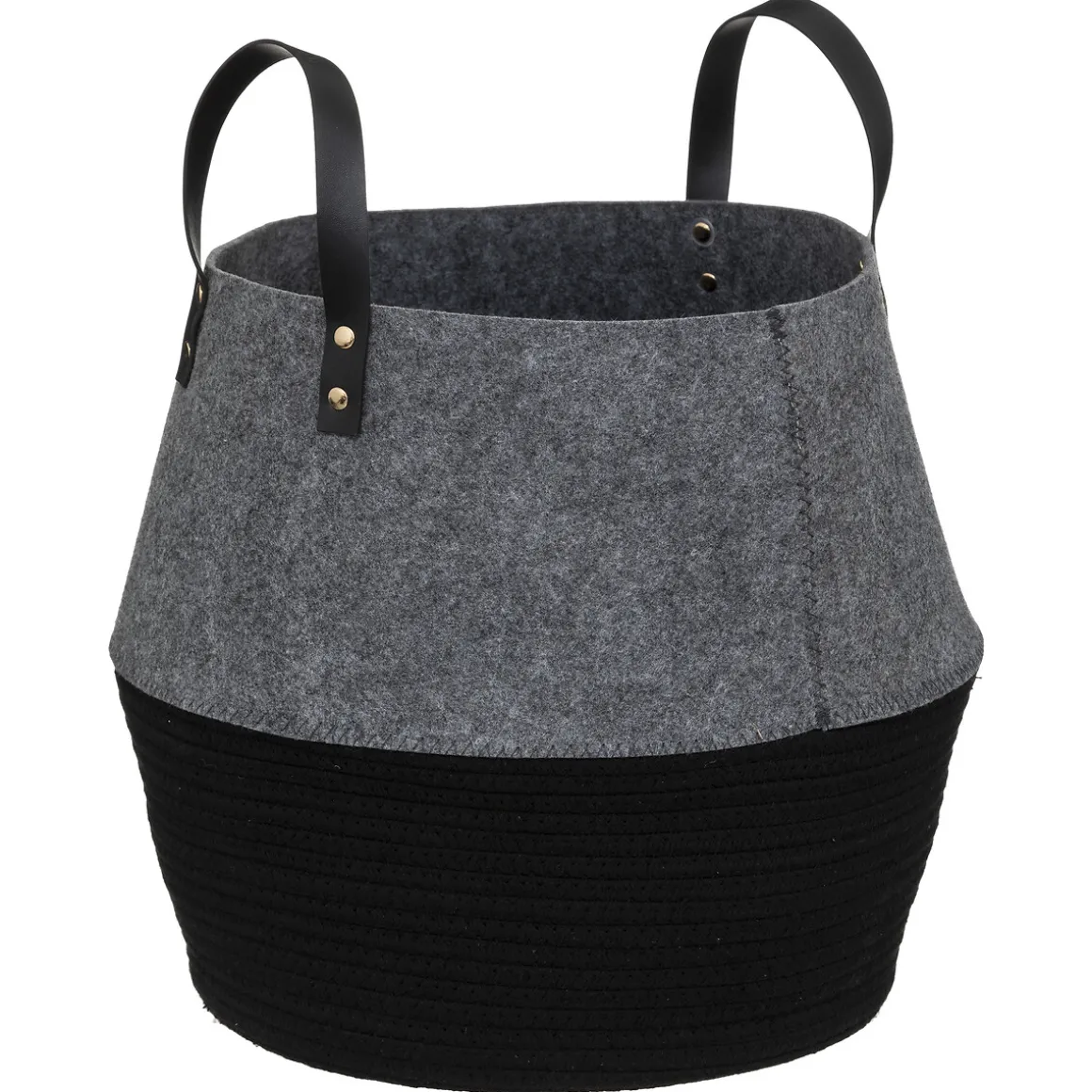 Cesta de fieltro gris y negro SOUL 39cm | En hôma encontrarás una amplia gama de cestas decorativas para tu hogar. | Color: Gris Oscuro, Negro | Medidas: 39x43cm | Material: Fieltro, Algodón | Marca: Atmosphera