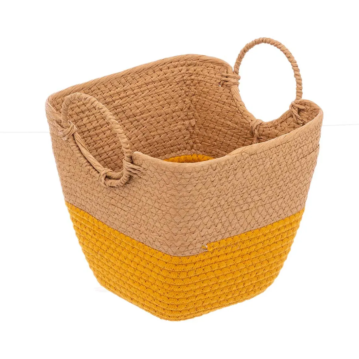 Cesto De Almacenaje Baño Solar Ocre | 25x23x26.5cm | Los accesorios de Baño y de organización son esenciales para que las rutinas más personales te proporcionen todo el bienestar que mereces. Conoce nuestra nueva colección de accesorios de baño. | Color: Ocre, Beige | Medidas: 25x23x26.5cm | Material: Papel, Poliéster, Algodón | Marca: 5Five