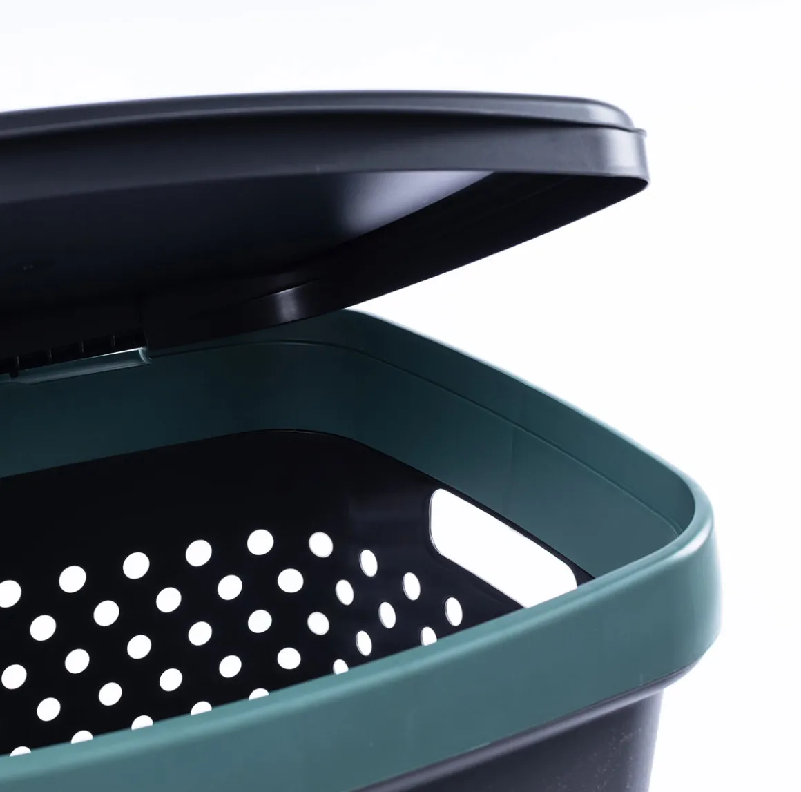 Cesto De Ropa Zoom 50L | Los accesorios de Baño y de organización son esenciales para que las rutinas más personales te proporcionen todo el bienestar que mereces. Conoce nuestra nueva colección de accesorios de baño | Color: Negro, Verde | Medidas: 50,1x34x43cm | Material: Plástico | Capacidad: 50L