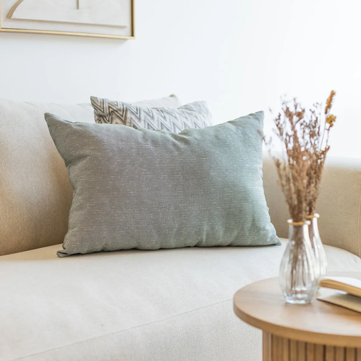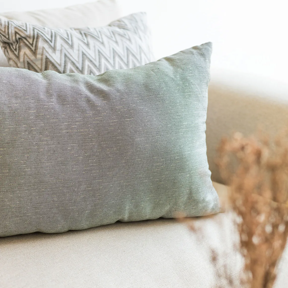 Cojín decorativo GLOW verde 45x60cm | La colección textil hôma reúne propuestas únicas para personalizar tu hogar. Desde cojines decorativos y fundas de cojín hasta las mantas más confortables, ¡vive tu hogar con toda comodidad! | Color: Crudo | Medidas: 20x45x60cm | Material: Algodón, Poliéster