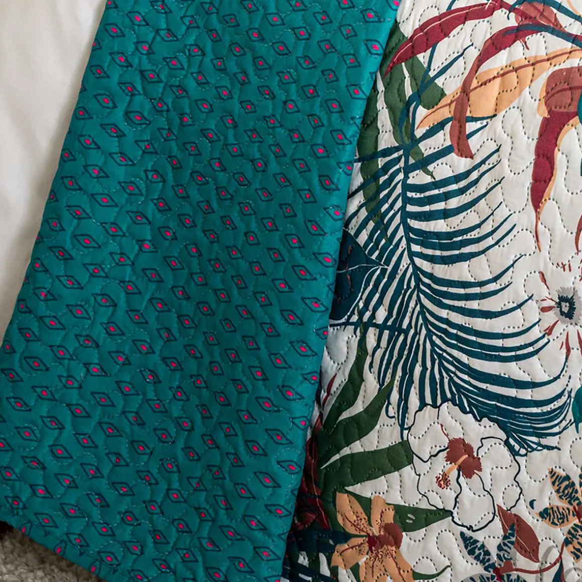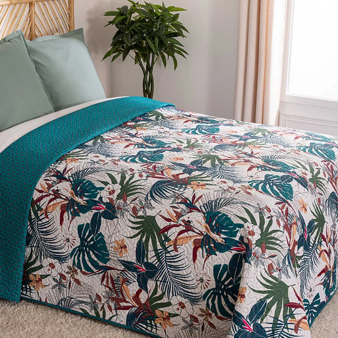 Colcha Jungle Reversible Azul 220x240cm | ¡Encuentra aquí todo lo necesario para un sueño tranquilo! Descubre nuestra colección de textiles para el hogar con propuestas de ropa de cama muy confortables: edredones, fundas, colchas, sábanas, almohadas para dormir, etc. | Color: Azul | Medidas de la colcha: 220x240cm | Material: Poliéster